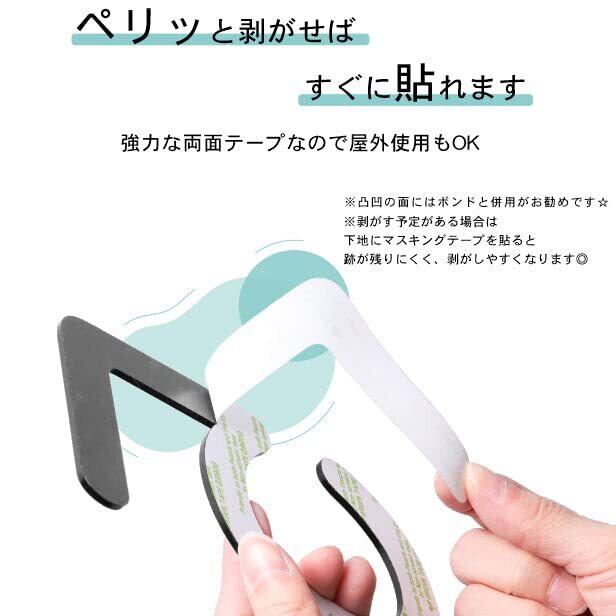 【詳細】アクリル製で軽くて丈夫、サビなくていつまでもキレイです。テープ付きで簡単に貼れます。平らな面への取り付けは、貼り付けるだけです。