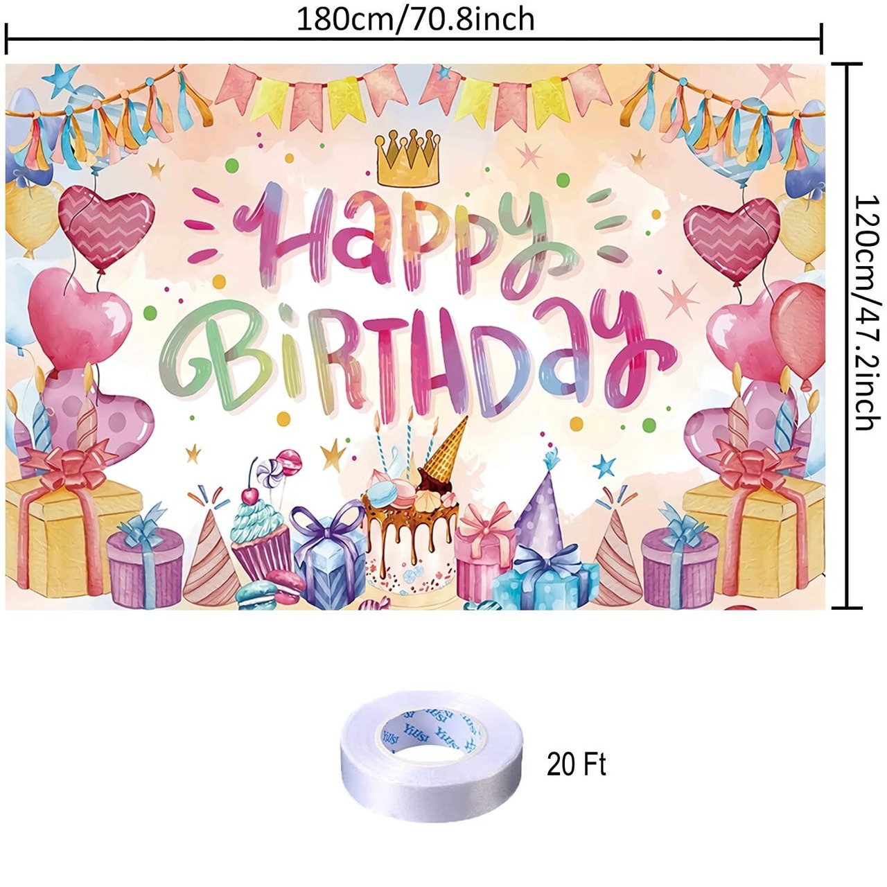 【2022最新】ハート バースデー タペストリー ハート 誕生日 飾り付け タペストリー おしゃれ 誕生日 壁掛け 写真背景 ハート Happy Birthday パーティー フォトポスター 女の子 おうちスタジオ 180x120cm