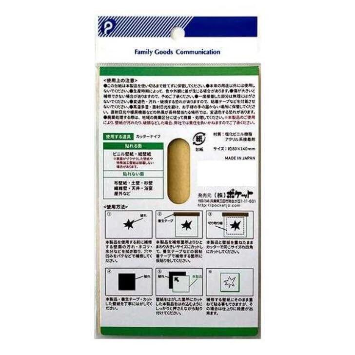 【2022最新】壁紙 補修 ピタッと貼るだけシールタイプ! 壁がみ補修シール 1枚入り かべ紙のキズかくし 8cm×14cm (B柄)