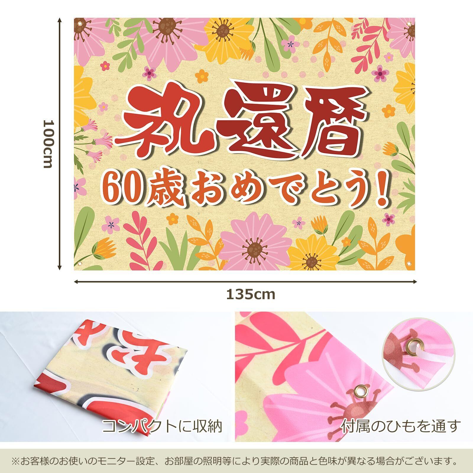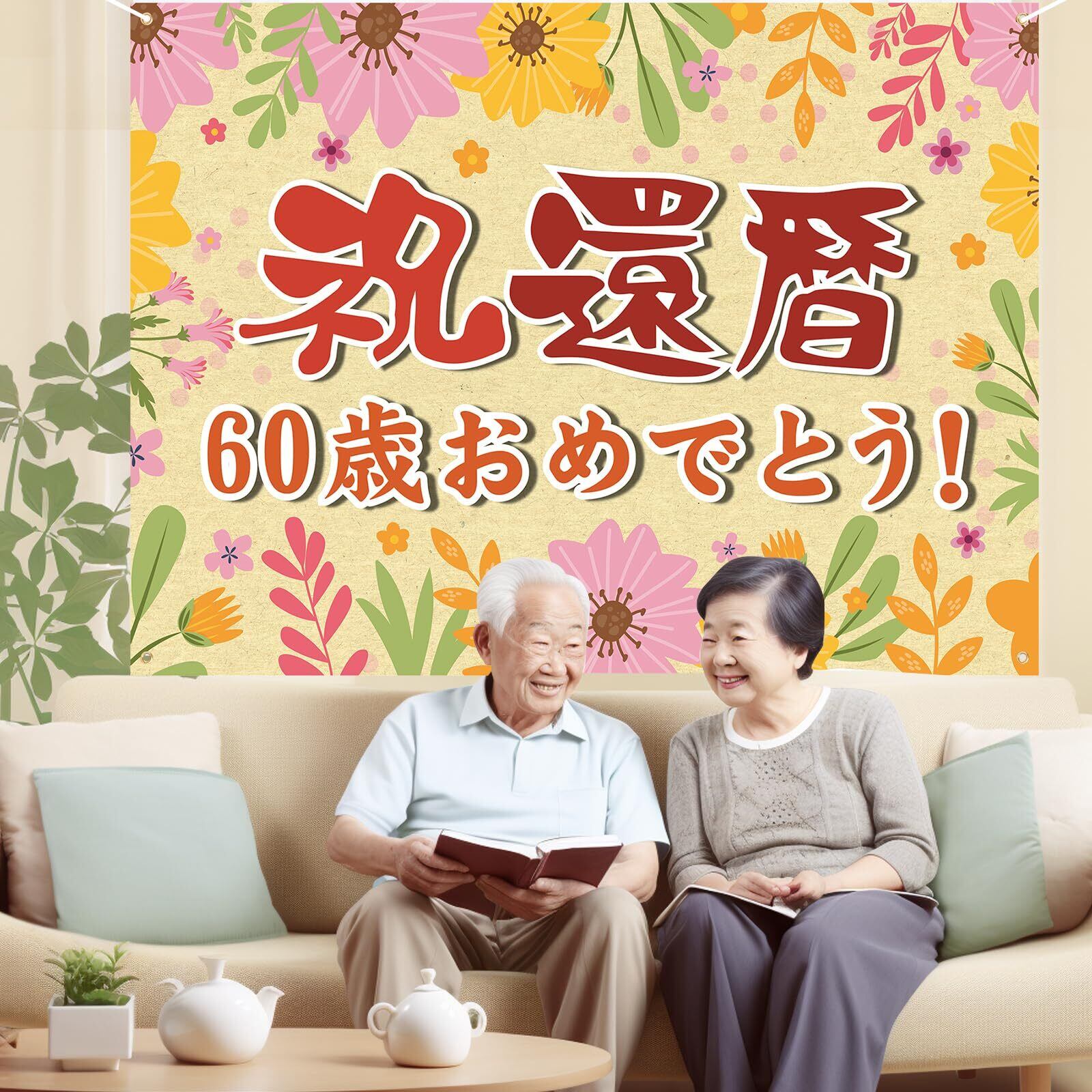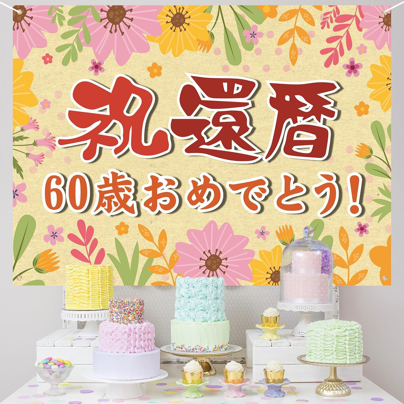 還暦祝い 誕生日 バースデー タペストリー 飾り付け 60歳 おめでとう 長寿祝い 横断幕 布ポスター 135*100cm パーティー 感謝 プレゼント 記念日 お祝い 飾り 装飾 赤