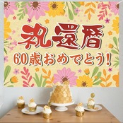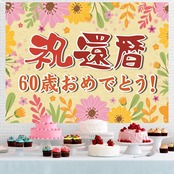 還暦のお祝いにぴったりなバースデータペストリーです。祝還暦 60歳おめでとうの大きな文字で、シンプルでありながらも豪華なデザインと鮮やかな色彩が、一気にバースデーパーティーの雰囲気を盛り上げます。大切な方の還暦をお祝いする特別な瞬間に、華やかで上品な雰囲気を演出できます