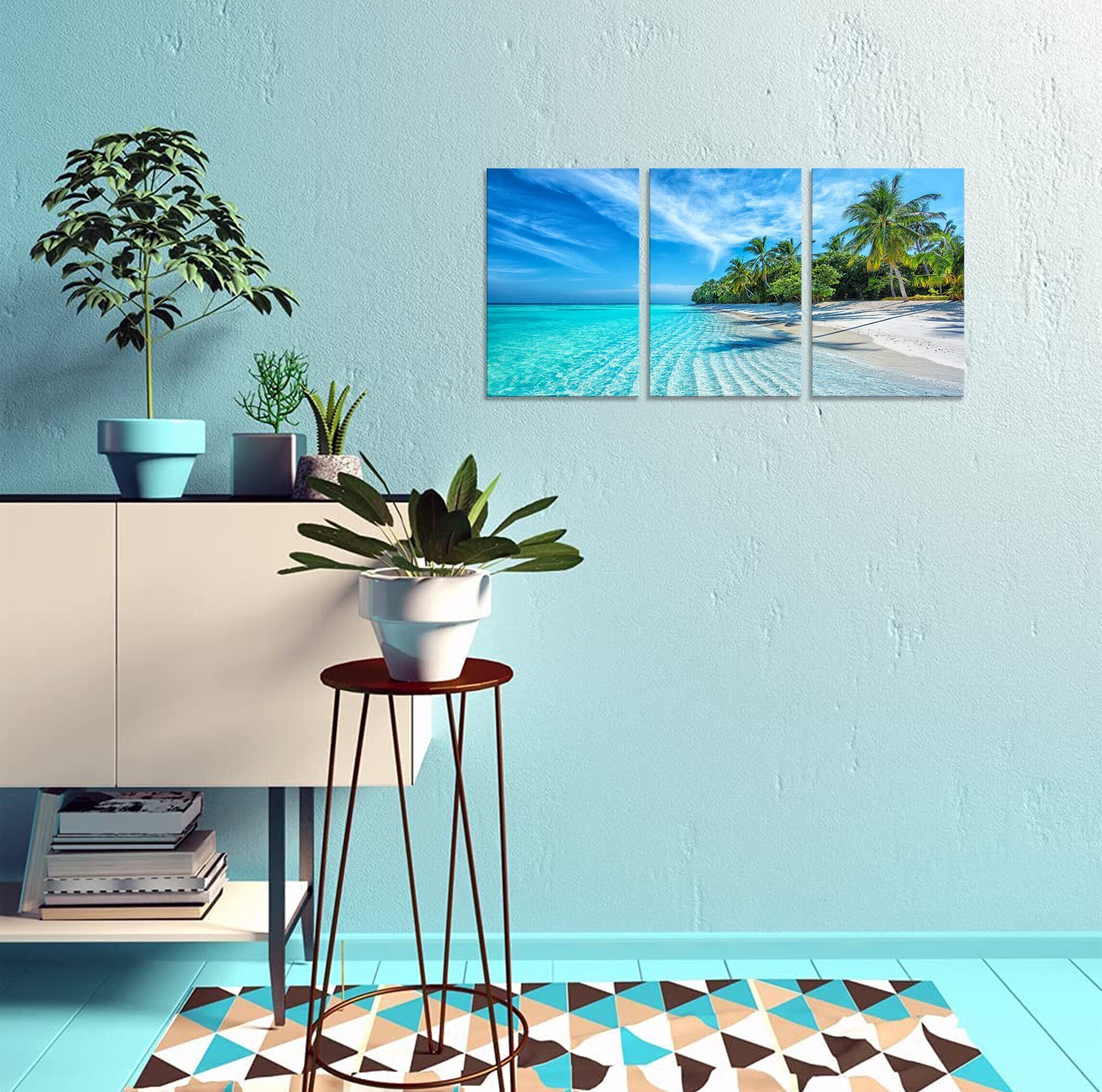【2022最新】3枚 海 ココナッツ壁の絵 青い海 写真 太陽 絵画 自然の風景 海の絵 ポスター 玄関 壁掛け 装飾軽くて取り付けやすい フレーム付きの完成品(30x40x3pcs)