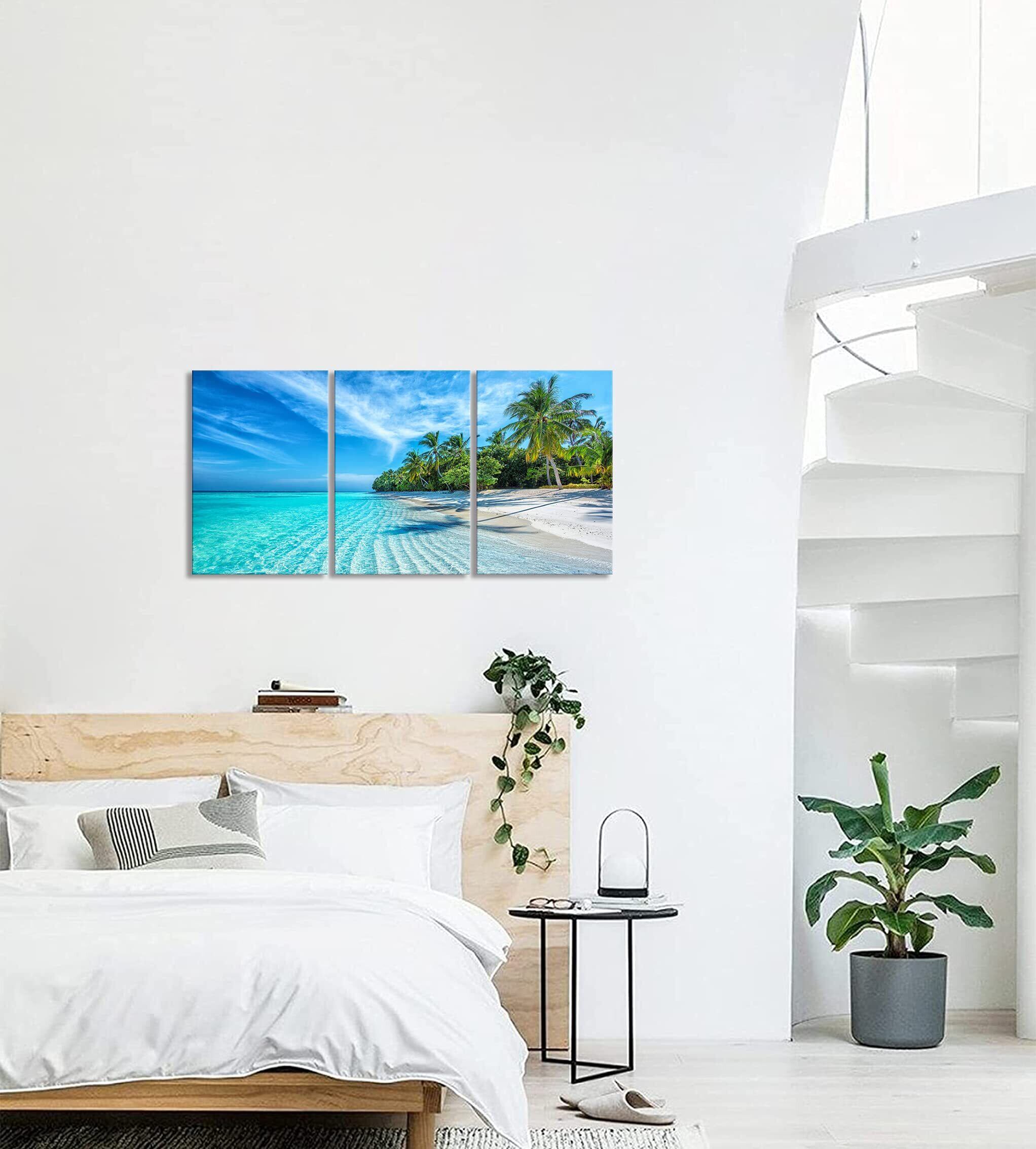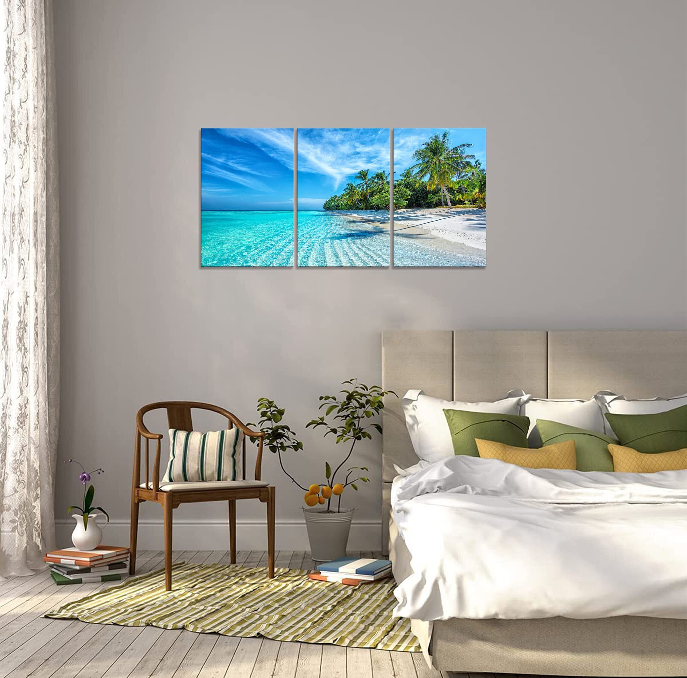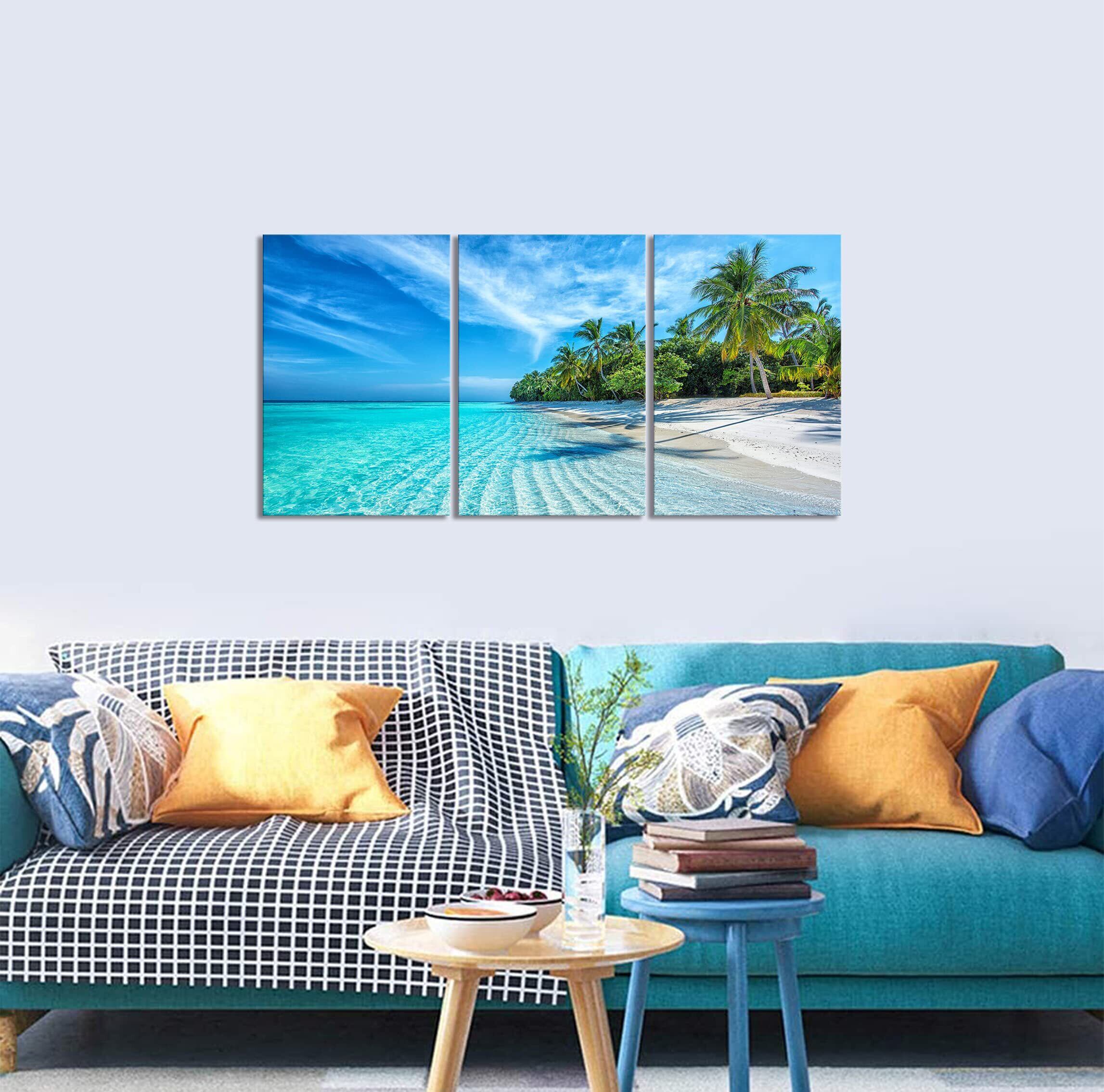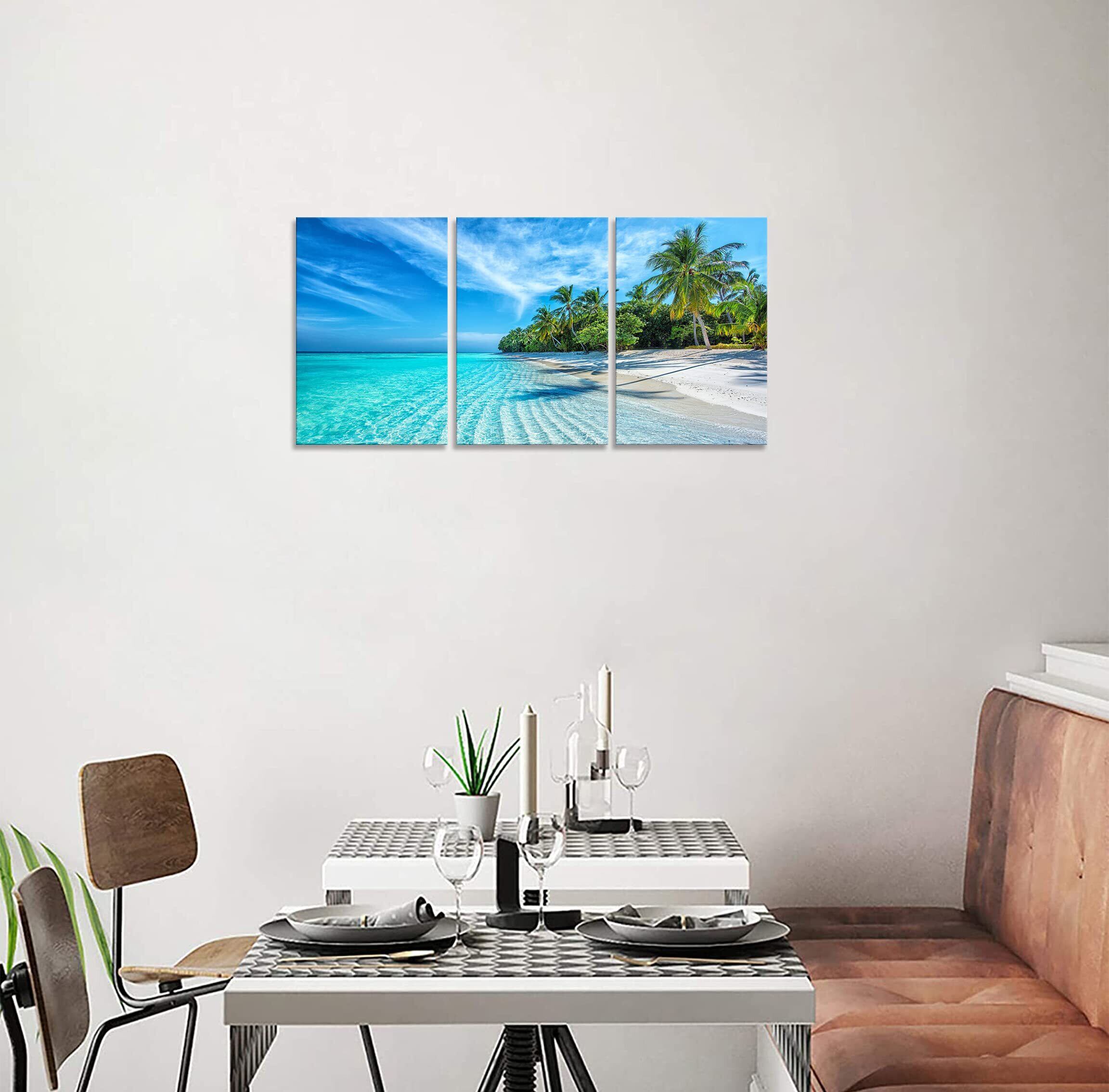 3枚 海 ココナッツ壁の絵 青い海 写真 太陽 絵画 自然の風景 海の絵 ポスター 玄関 壁掛け 装飾軽くて取り付けやすい フレーム付きの完成品(30x40x3pcs)