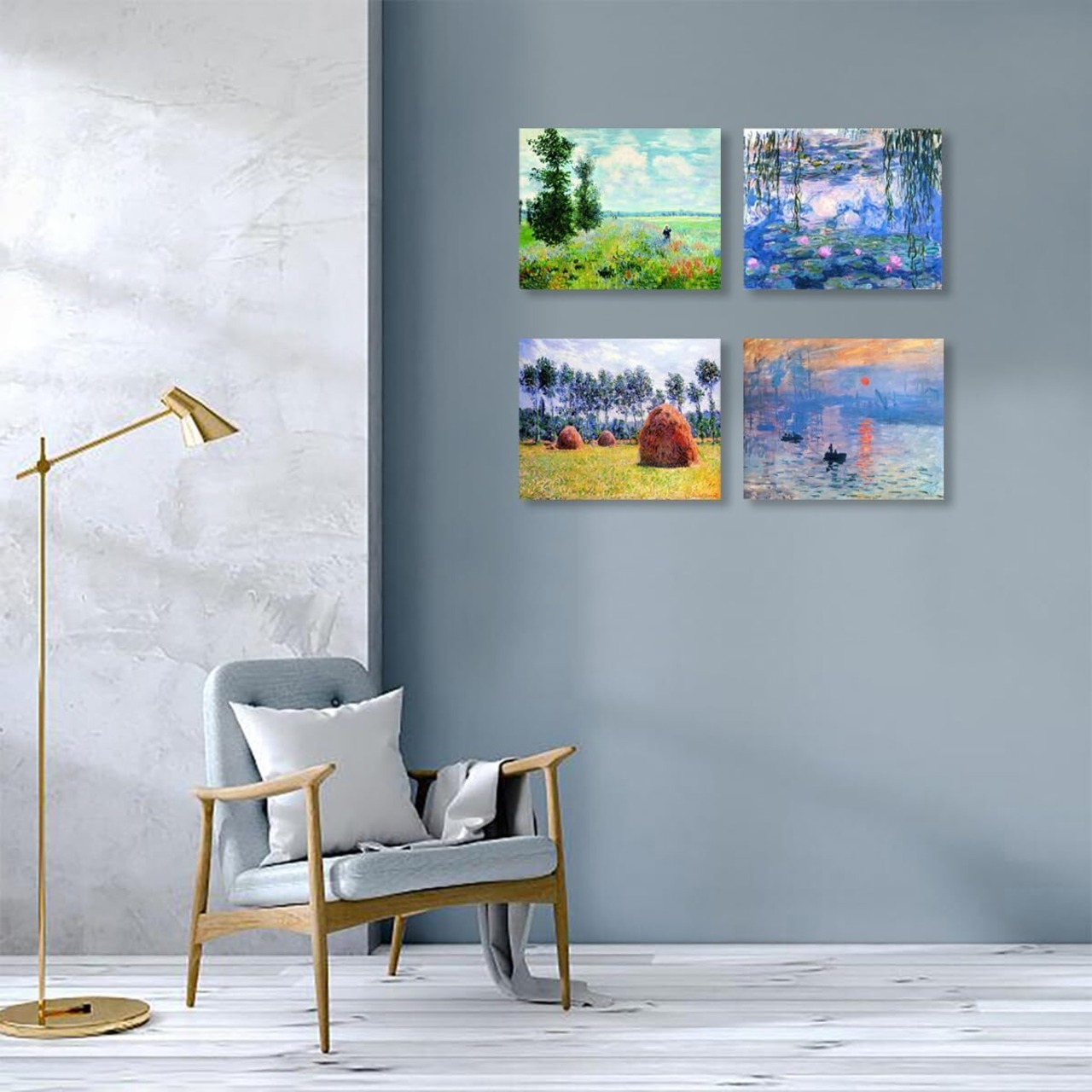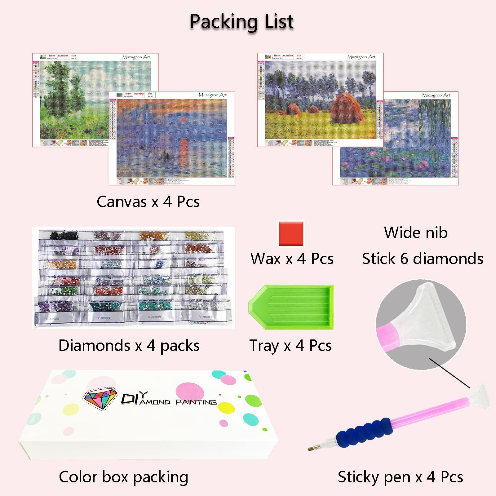 Muzagroo Art(ムザグルーアート) 大人のためのDIY 5Dダイヤモンドペインティングキット、初心者のためのアートキット、モネリビングルーム寝室4PCSウォールアート
