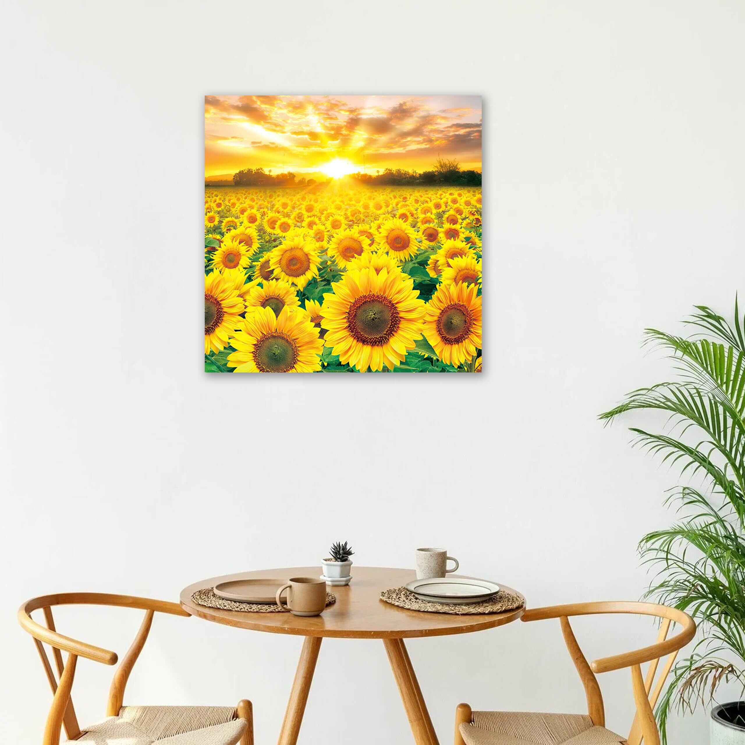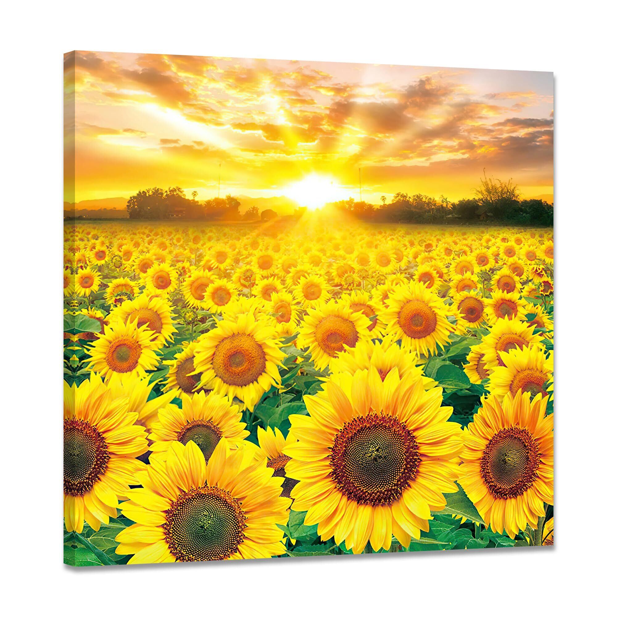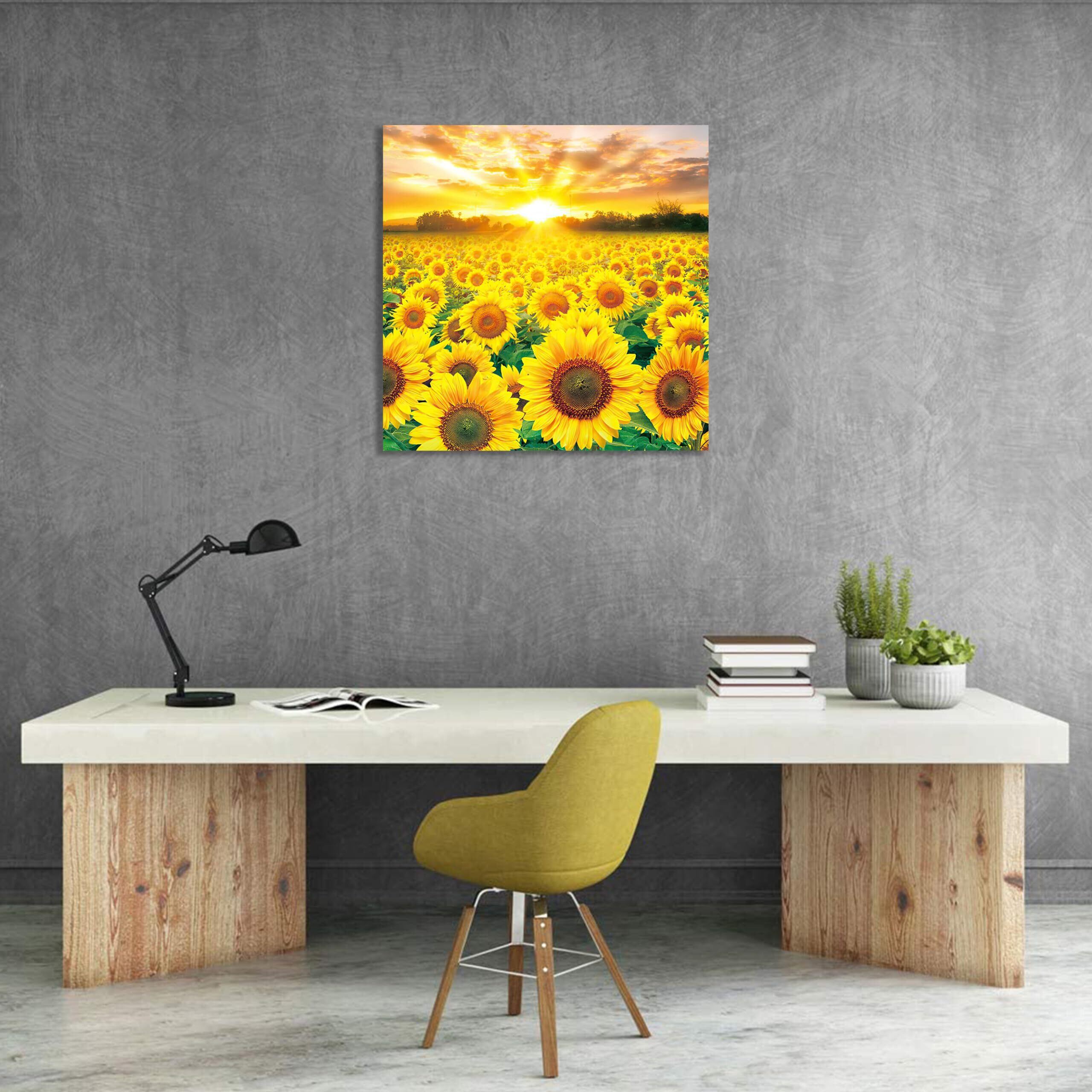 【数量限定】ひまわり 絵画 向日葵 アートパネル 花の絵 インテリア ポスター 植物 壁掛け 部屋 飾り絵 玄関に飾る絵 木枠付きの完成品(40x40cm)