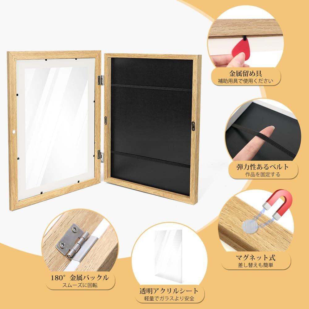【大容量収納額縁】収納しながら作品をディスプレイ~A4サイズ紙が50~150枚ぐらい保管可能。アートフレームは厚みがあって、立体的な作品も納められます。ゴムベルトがあるので、作品がしっかりと固定できます。(ゴムベルトが邪魔に感じる場合、展示したい作品をホワイトマットに置き、透明テープで固定したほうがいいと思います。)