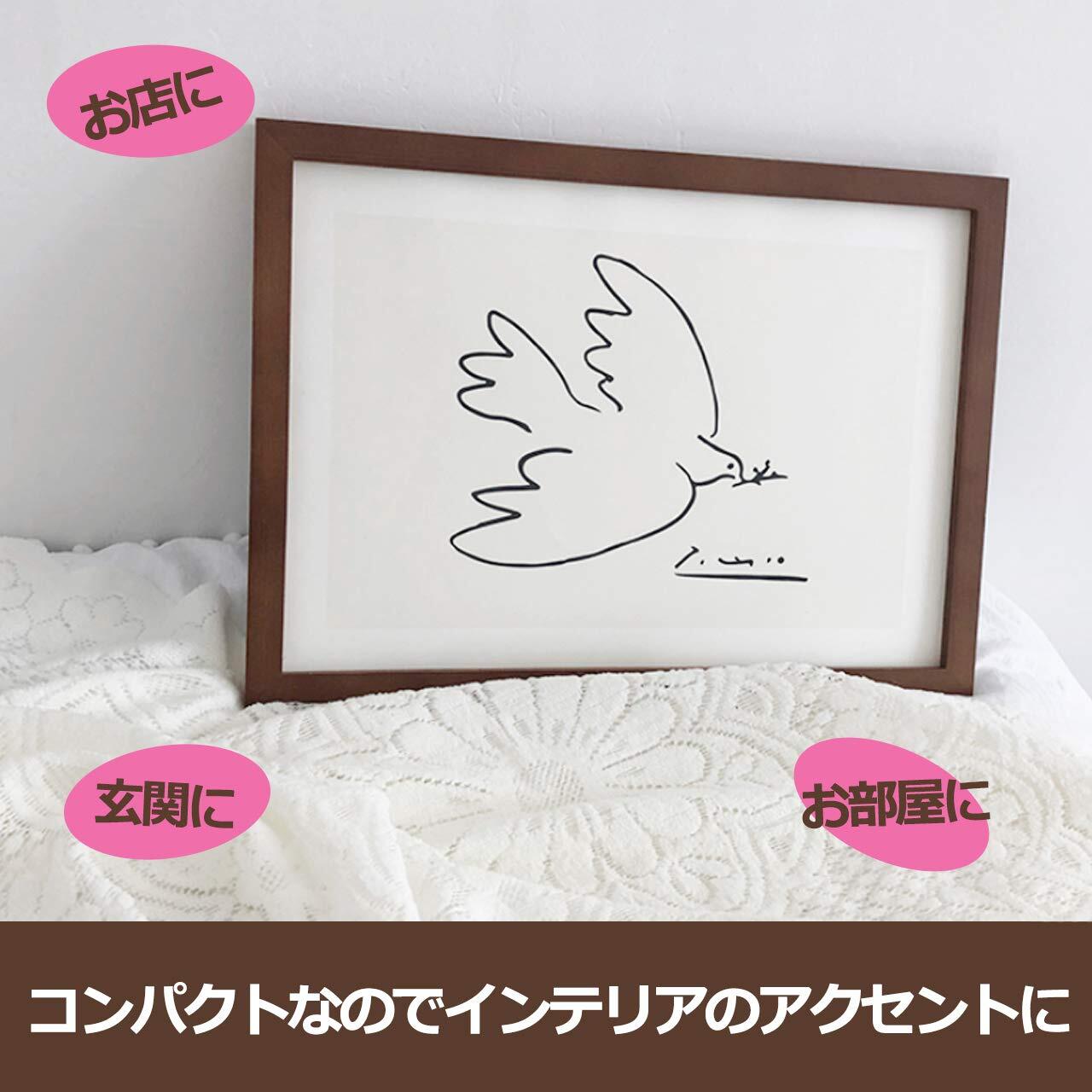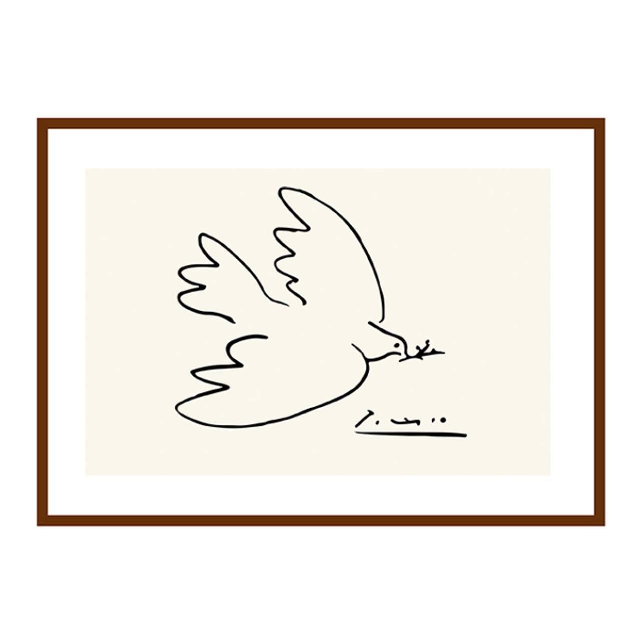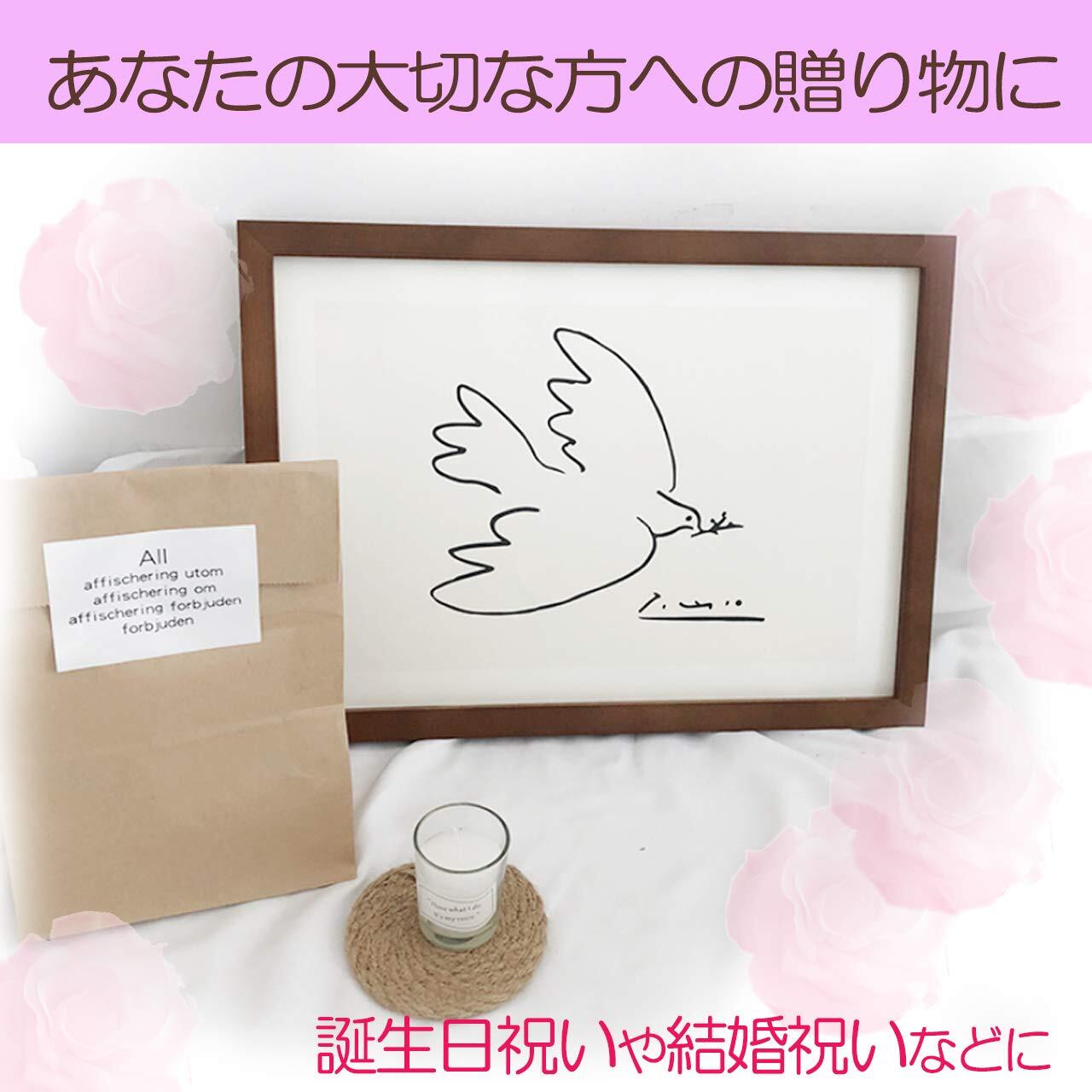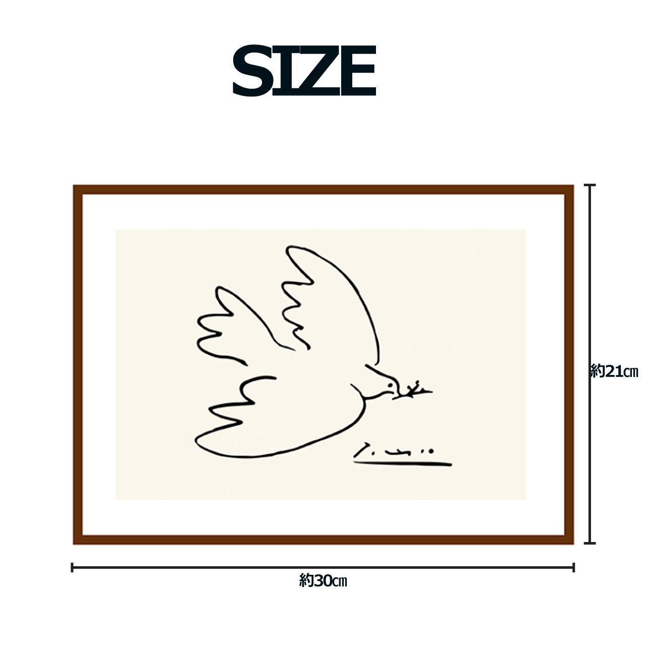 HAMILO ピカソ 鳩 絵画アートフレーム 額付き 木製枠 壁掛けアートフレーム インテリア (ホワイト×ブラウン)