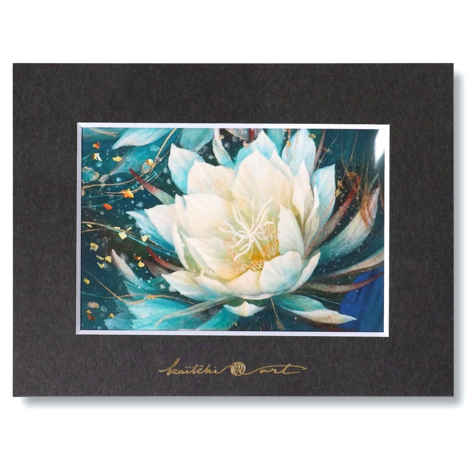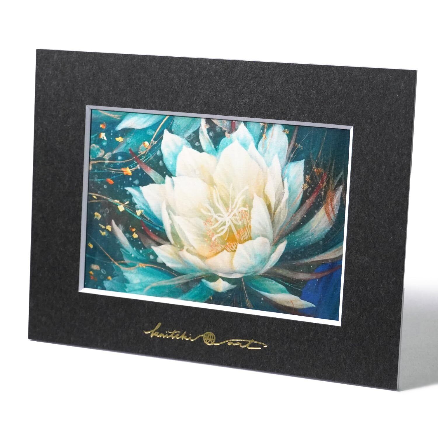 YouTubeなどで活動するkaiteki ARTの日本画作品を印刷したはがきサイズのカードと、オリジナルアートペーパーフレームのセット