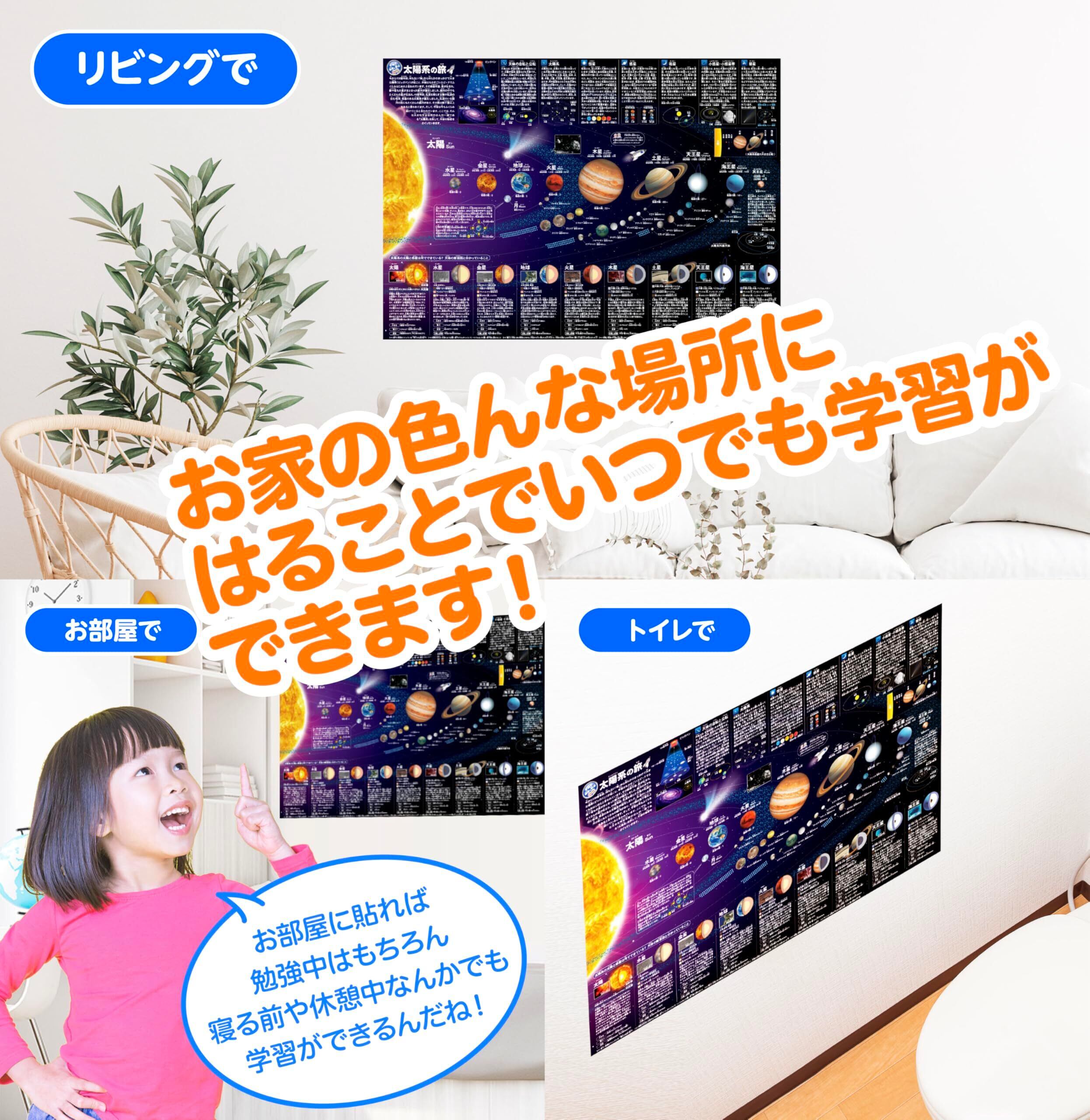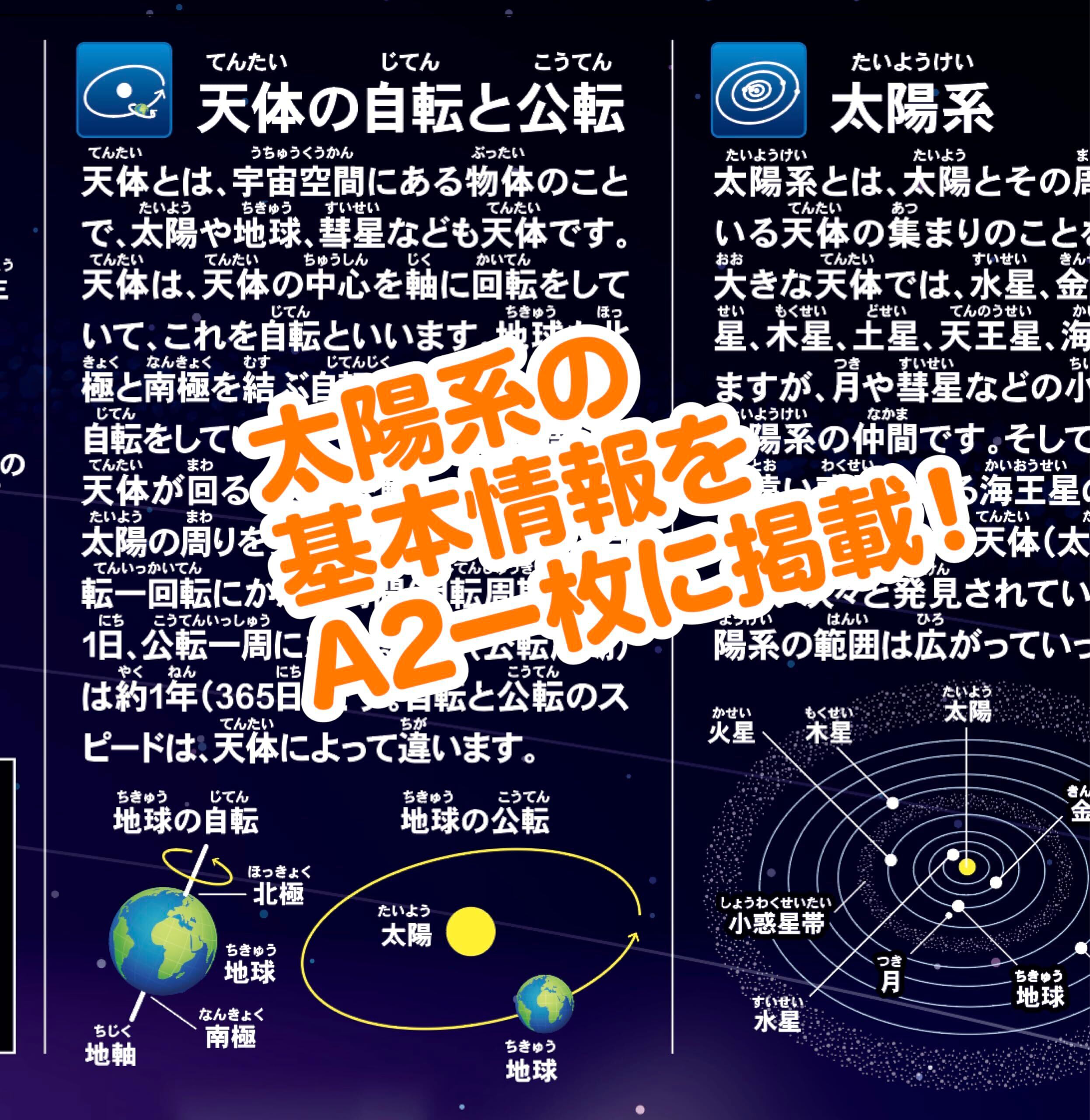 どこでも学習館 太陽系ポスター(宇宙・太陽系・太陽・惑星など) A2サイズ 小学生〜中学生向け 学習ポスター