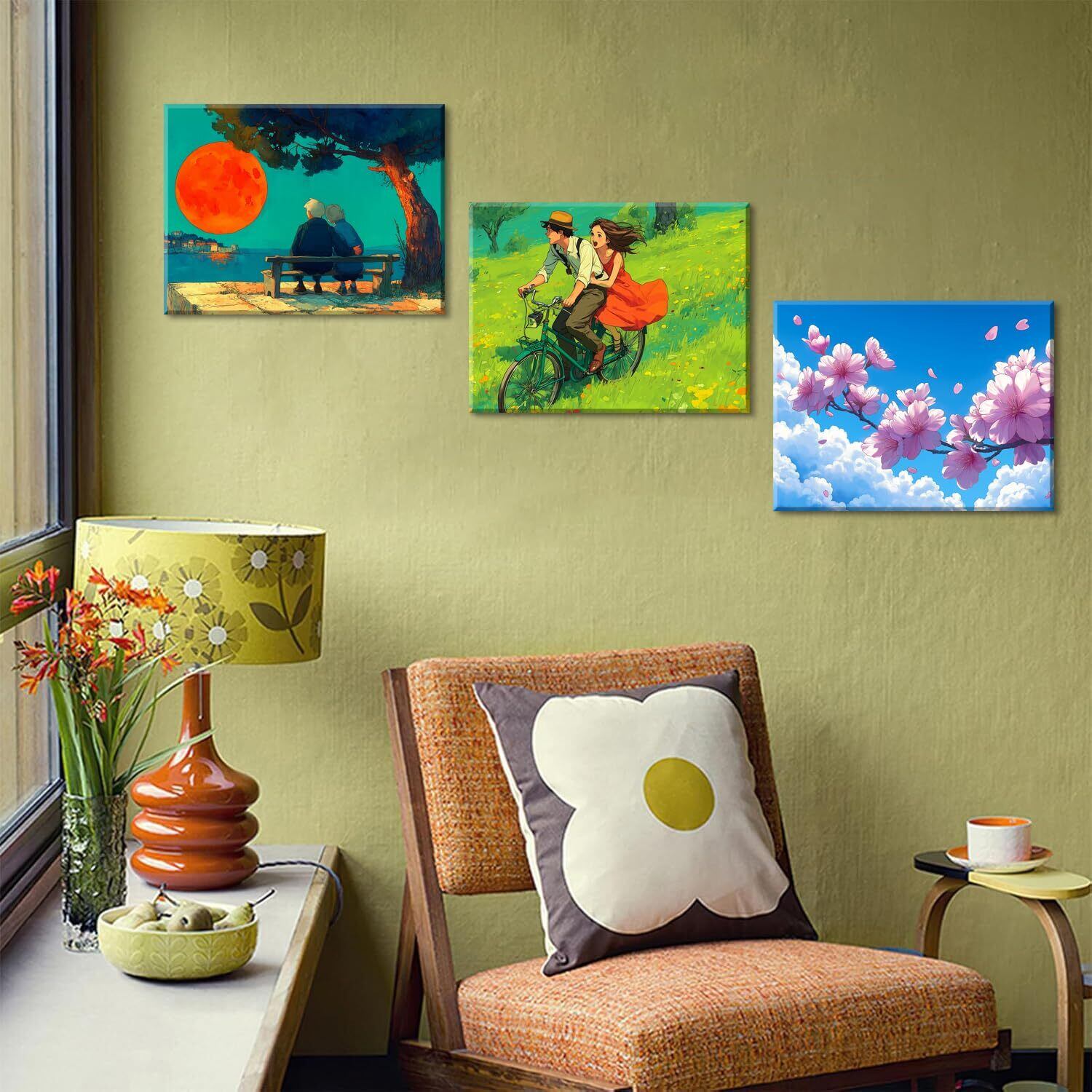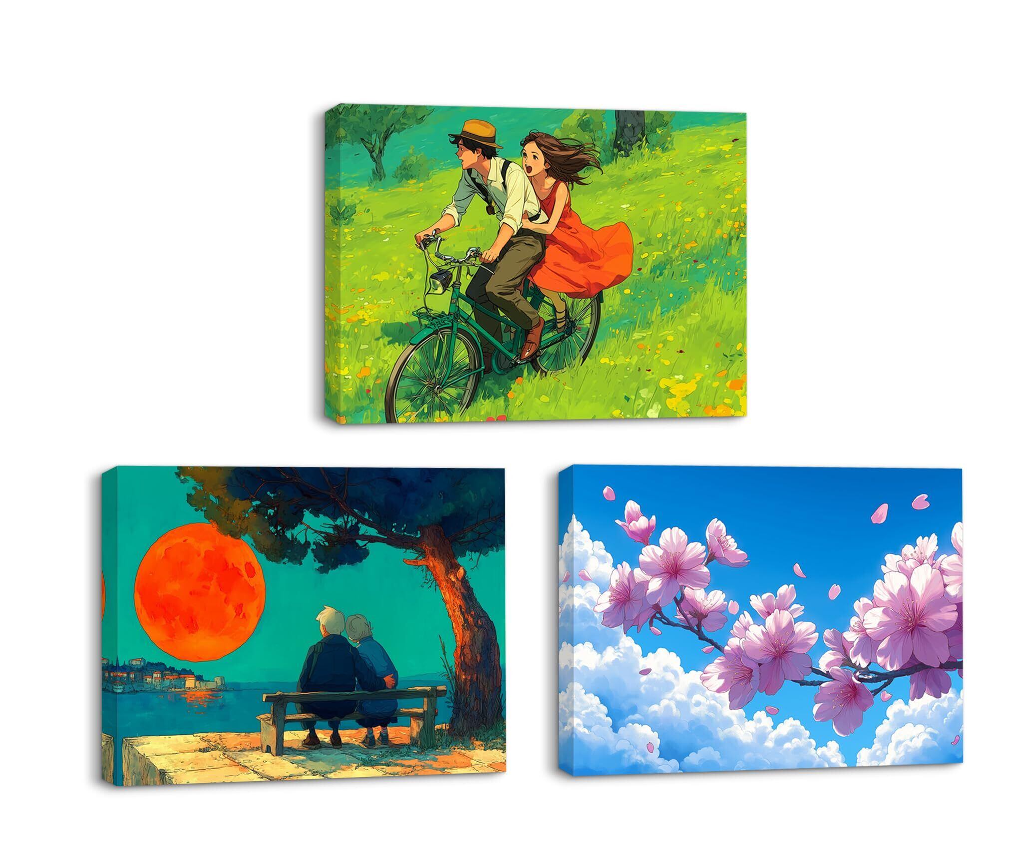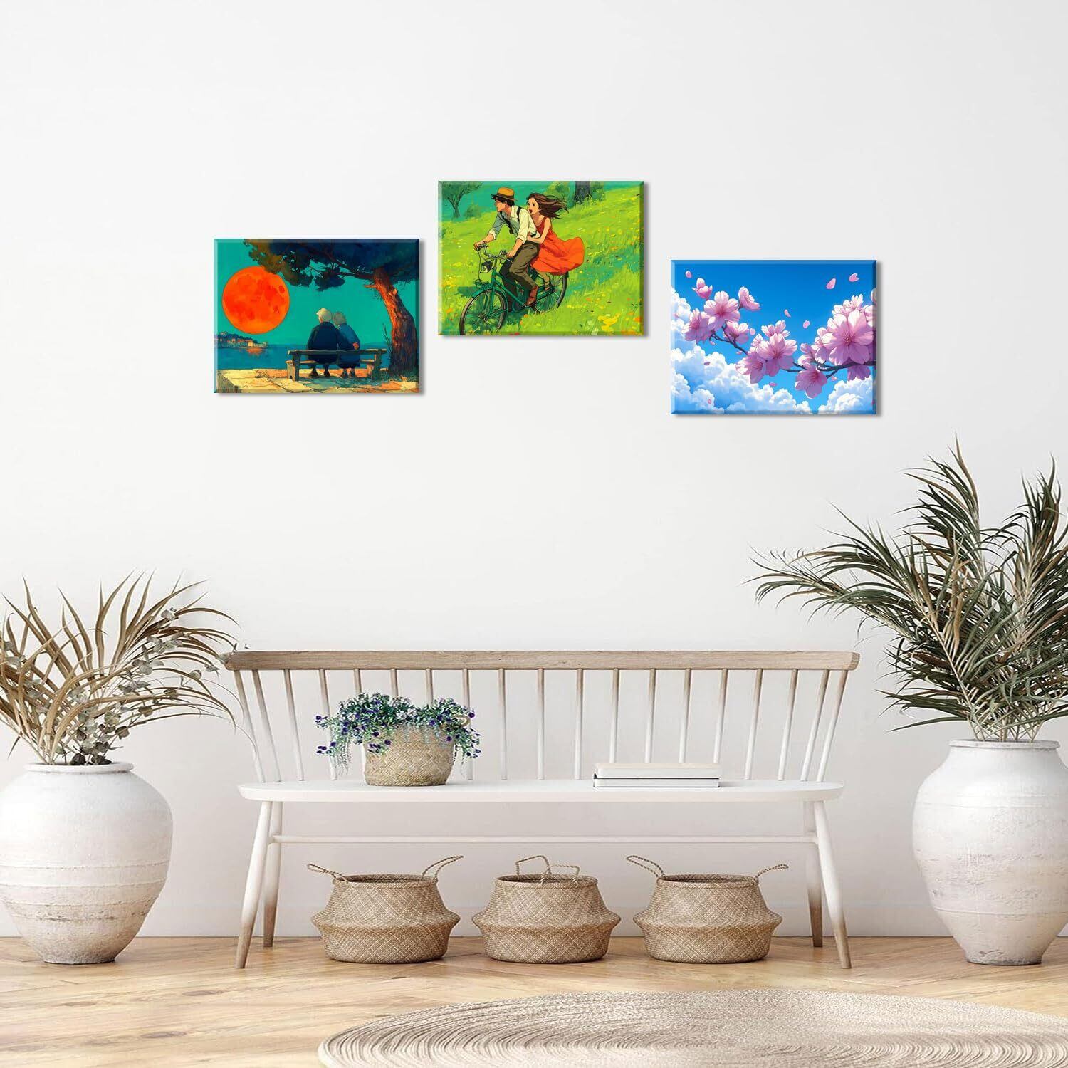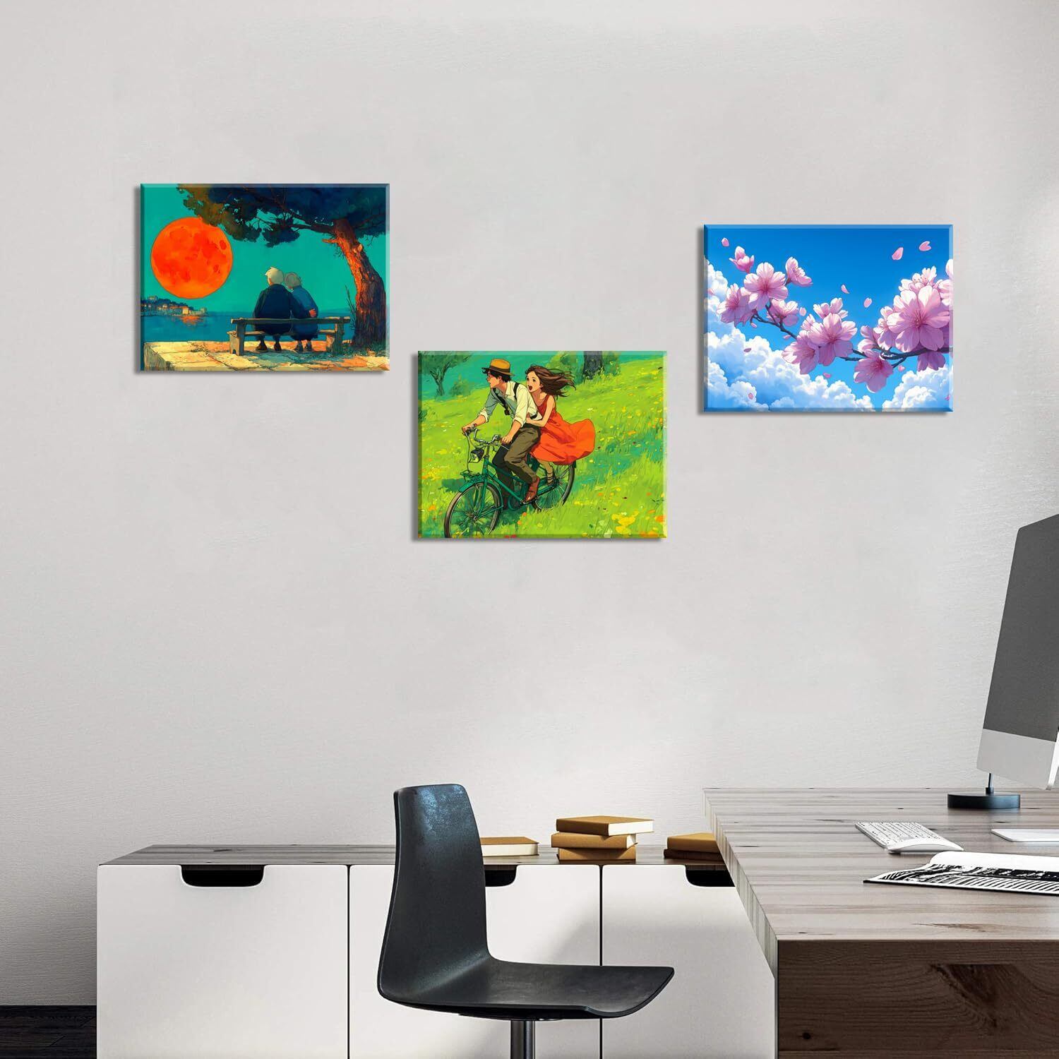 PIY PAINTING 絵画 ポスター 3枚 アートパネル 壁の絵 壁掛け インテリア 絵 日本マンガ風 モダン油絵 キャンバス画像 額入り 装飾画 アートプリントキャンバス 風景画 複製画 写真 装飾画 誕生日プレゼント 部屋飾り ソファの背景絵画 壁飾り 玄関 書斎 事務所 宿舎 フレーム 木枠付きの完成品 30x40cm