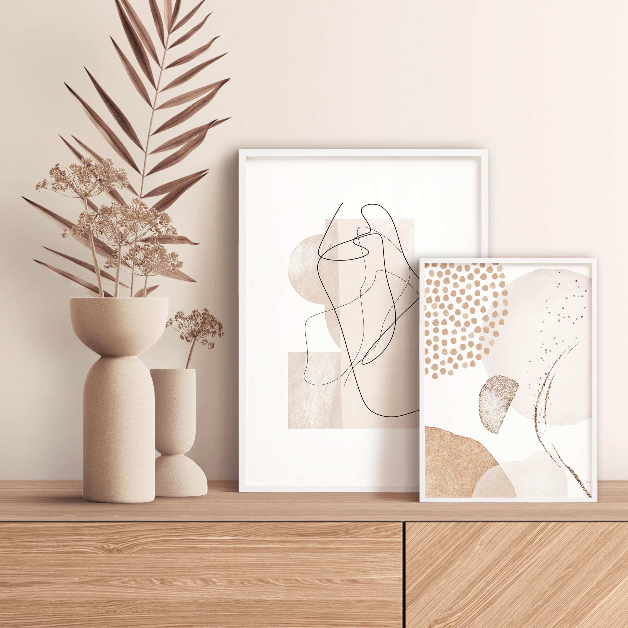 こちらは、ベージュモチーフを使った北欧デザインの線画ポスターです。