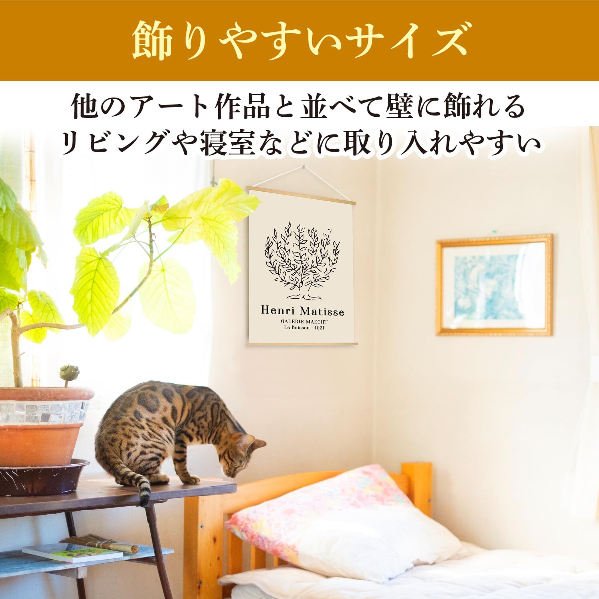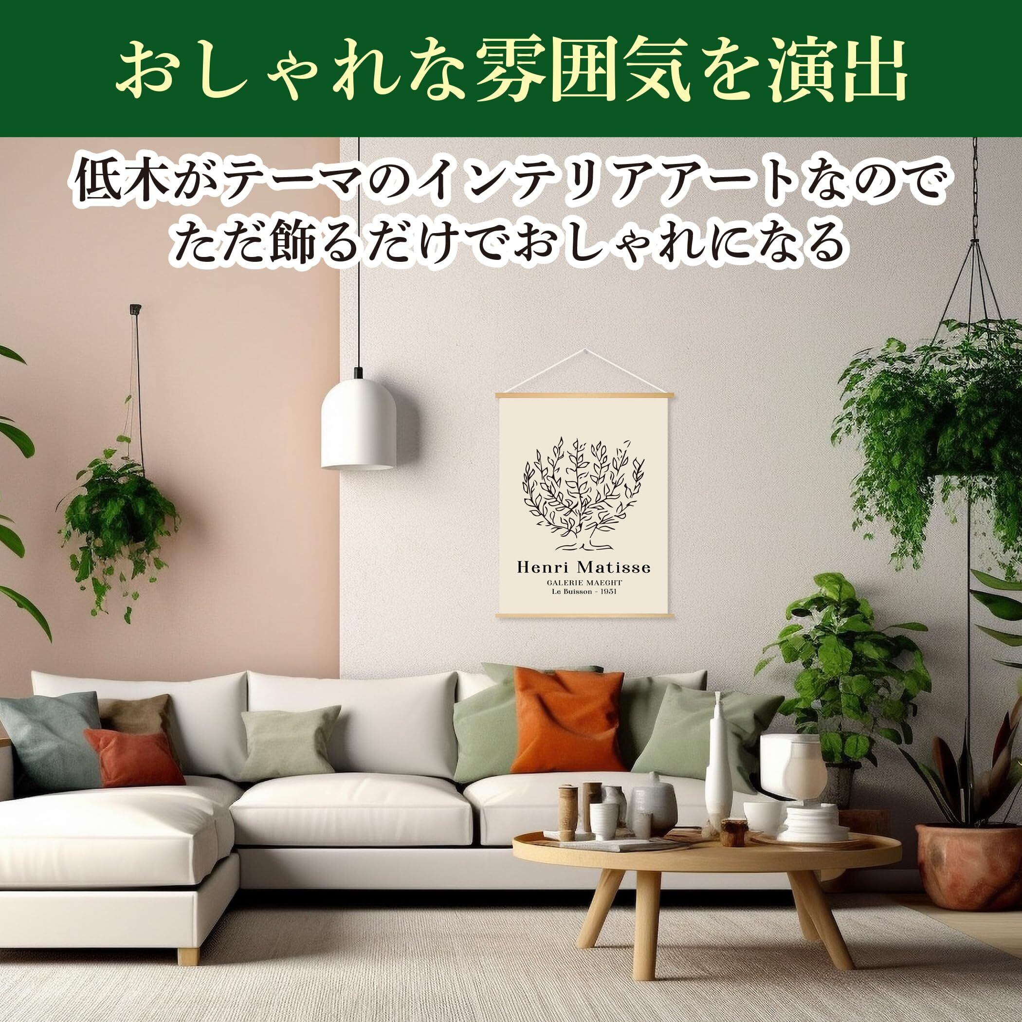 【空間を上品に引き立てるマティスの「低木」】マティス作品の中でも人気の高い「低木」を採用。飾るだけで上品で洗練された雰囲気を演出し、アート初心者の方でも取り入れやすいデザインです。おしゃれな部屋作りや模様替えのアクセントにも最適なインテリアアートです。
