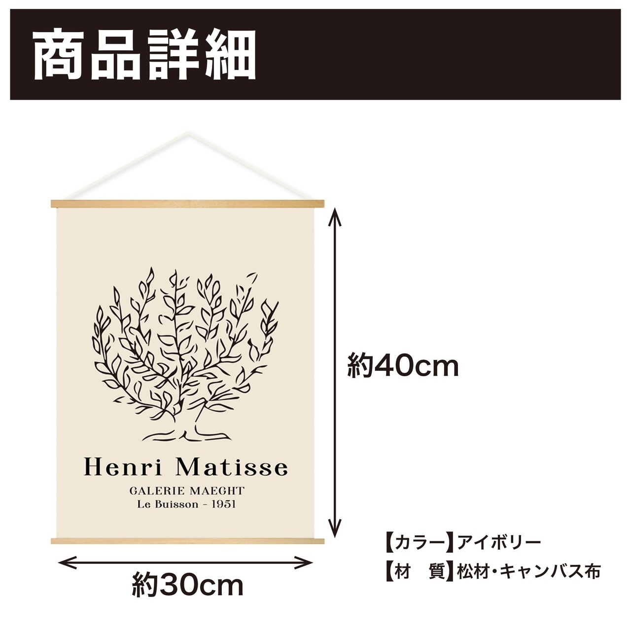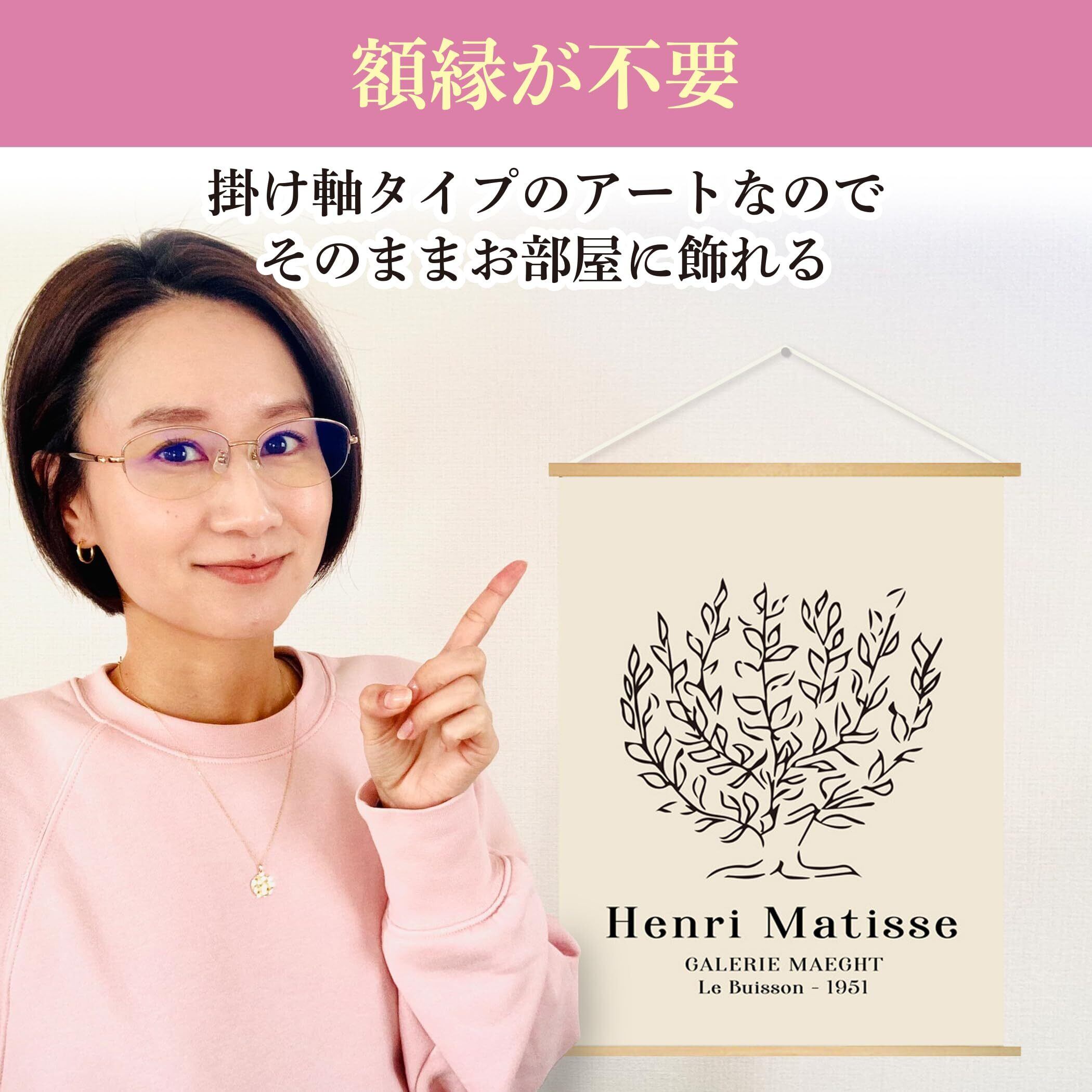 【すぐに飾れる掛け軸タイプ】キャンバス布にプリントしたアンリ・マティスの線画を、掛け軸タイプで仕上げたインテリアアートです。木製フレームと紐付きで、箱から出して壁に掛けるだけで完成。額縁不要で、おしゃれなアートを気軽に楽しめます。