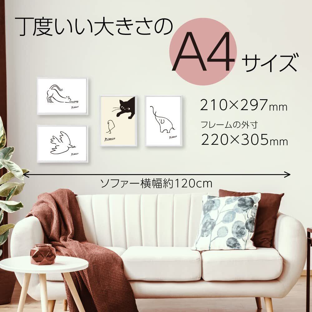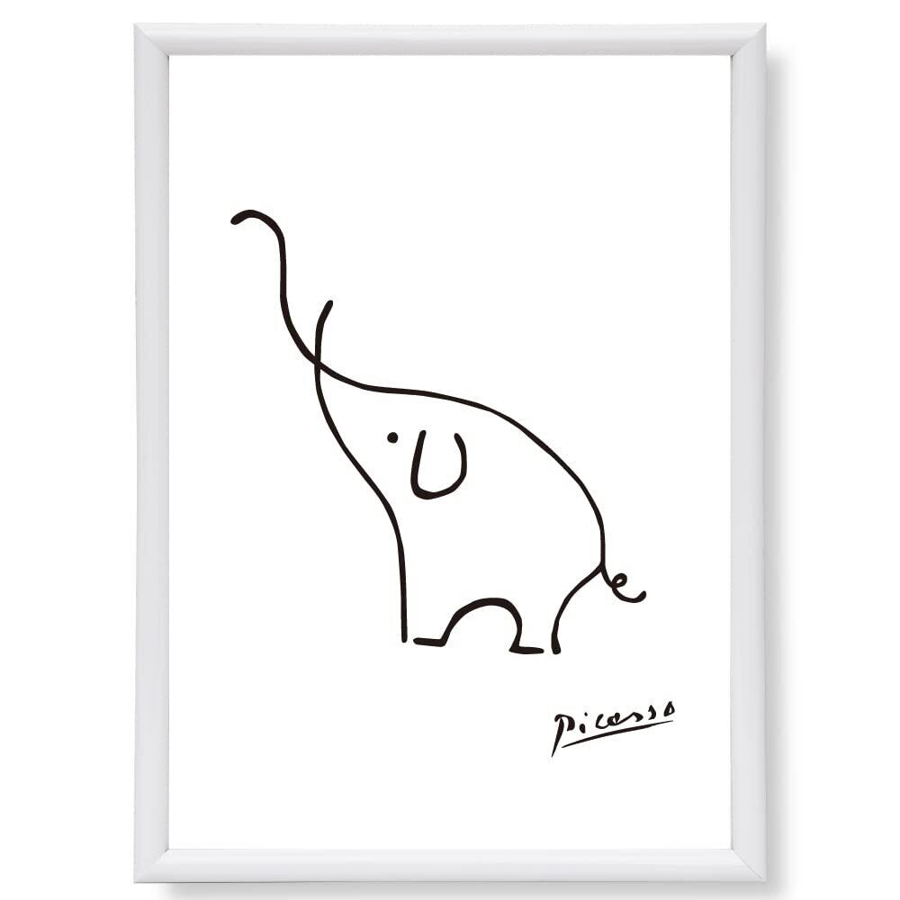 【新着商品】ピカソ ポスター アートポスター リトグラフ ドローイング 象 SQIP (スキップ) ラインアート 線画 モノクロ 白黒 絵画 絵 A4 額縁 付き 北欧 おしゃれ インテリア 010 (A4+フレーム)