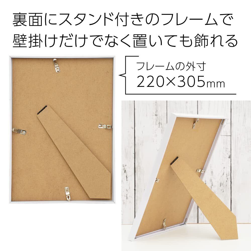 フレームサイズ:約220×約305mm。裏にスタンドが付いているので縦置き・横置きが可能です。