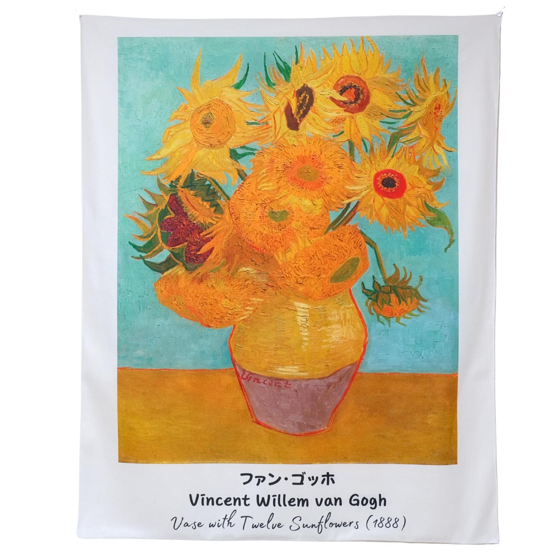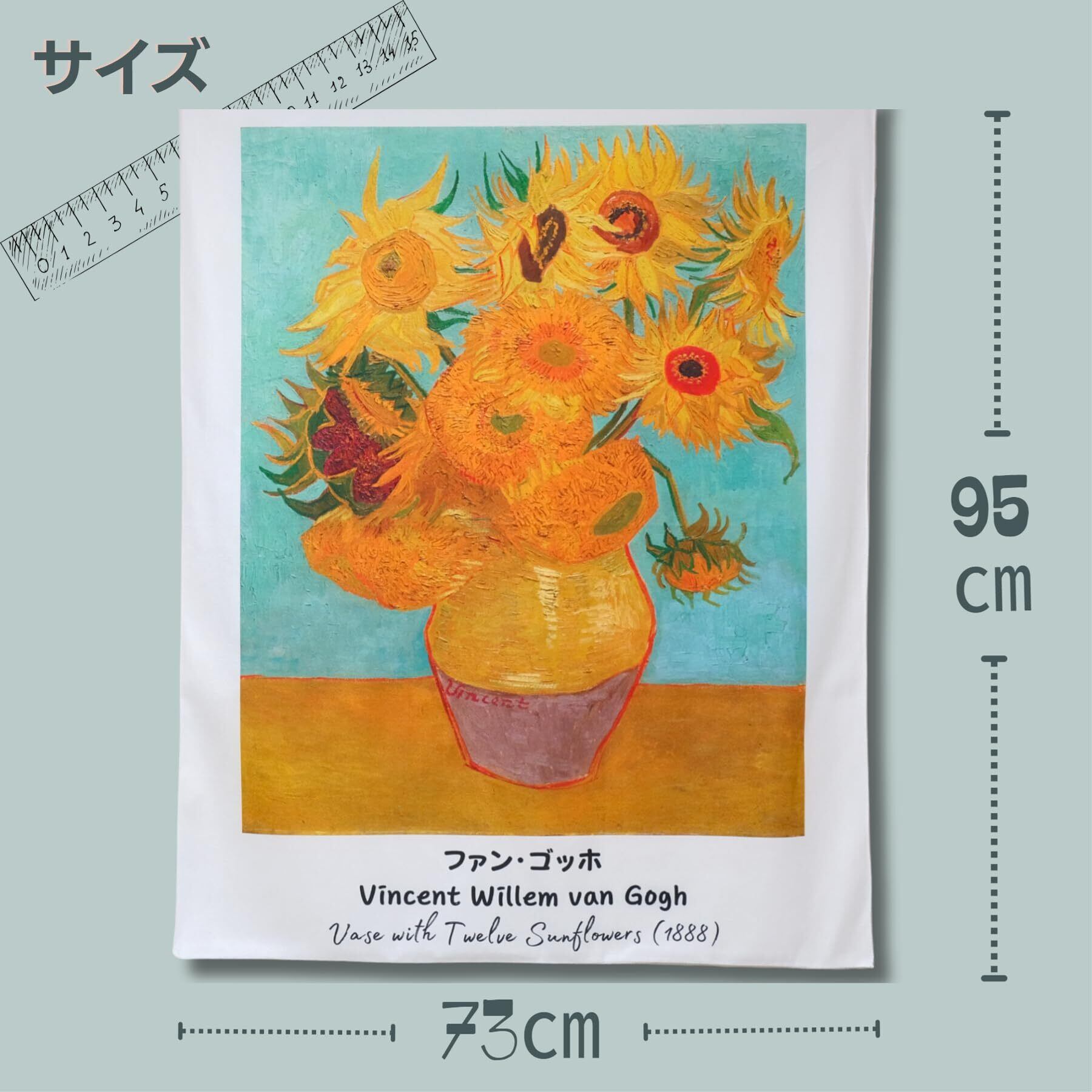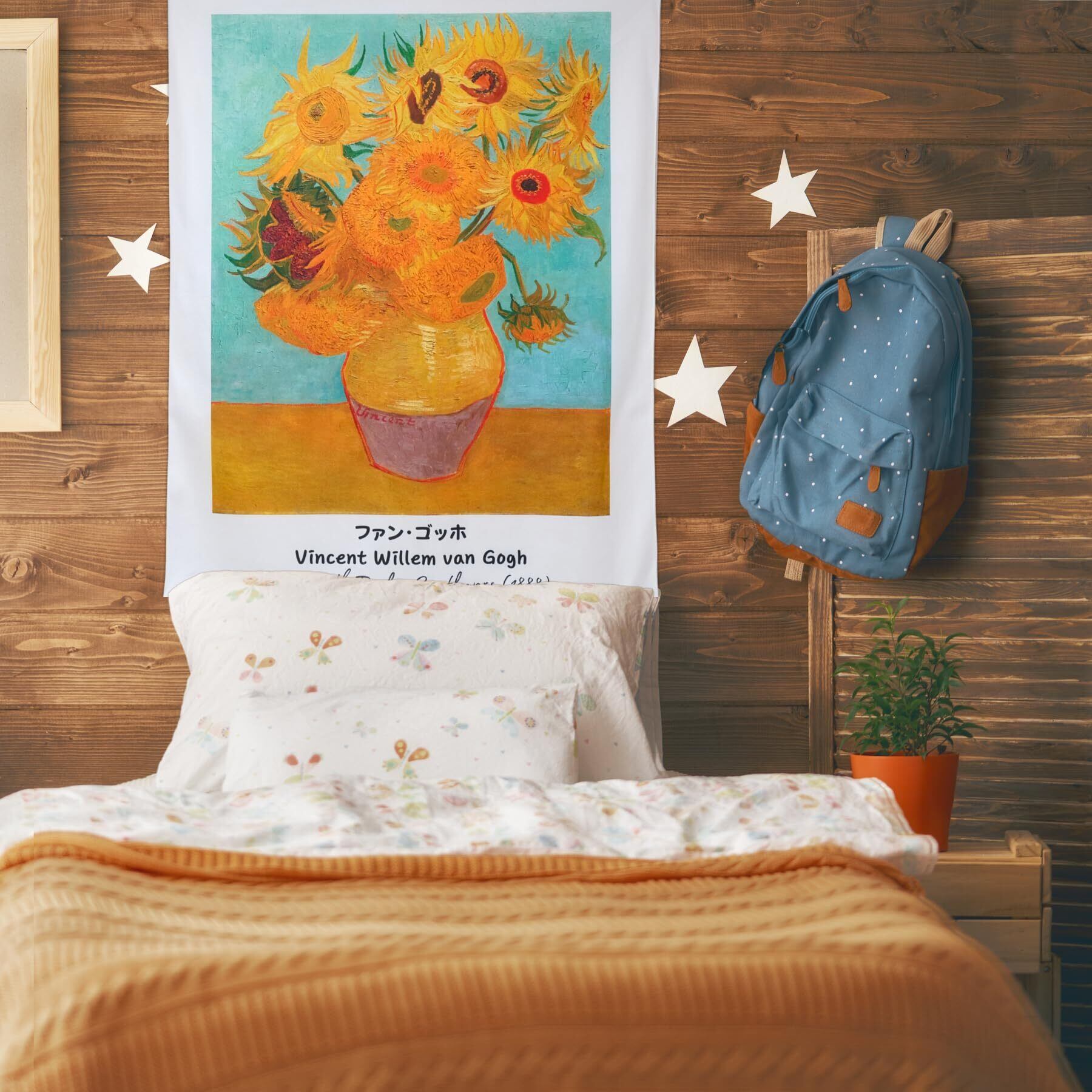 ゴッホ 名画 タペストリー 大判 おしゃれ 壁掛け 布ポスター インテリア 背景布 マルチカバー カフェカーテン 目隠し 多用途 (ひまわり, 95㎝×73㎝)