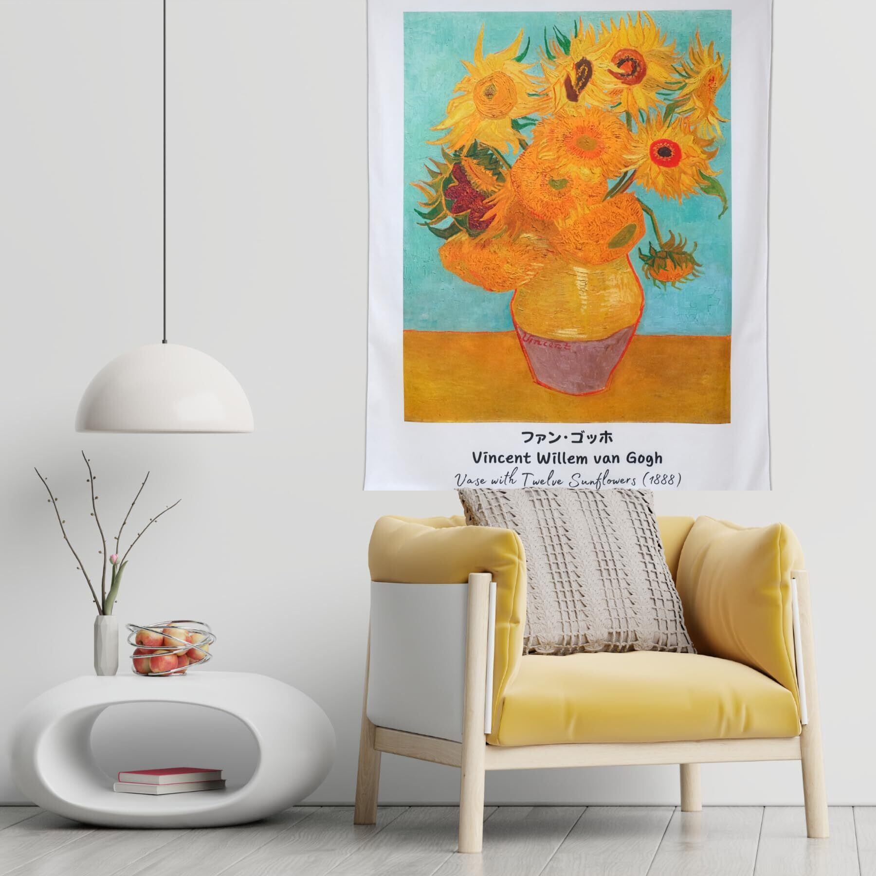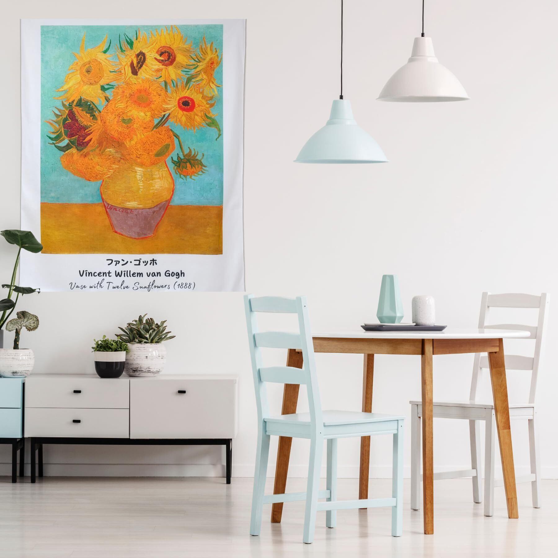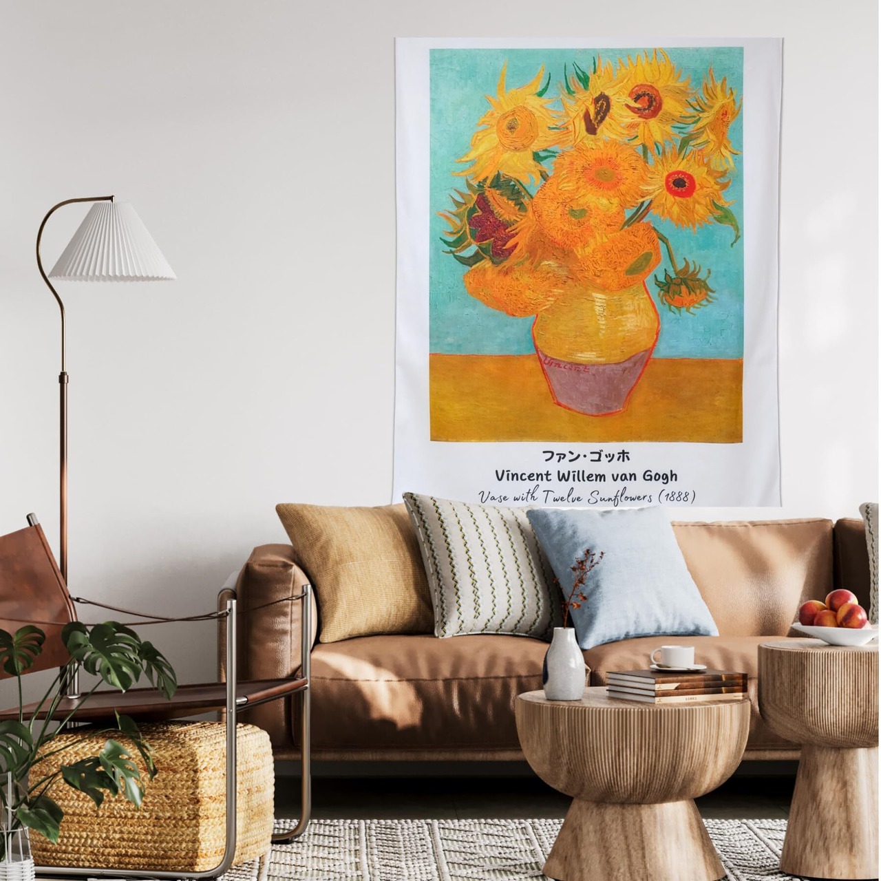 ゴッホ 名画 タペストリー 大判 おしゃれ 壁掛け 布ポスター インテリア 背景布 マルチカバー カフェカーテン 目隠し 多用途 (ひまわり, 95㎝×73㎝)