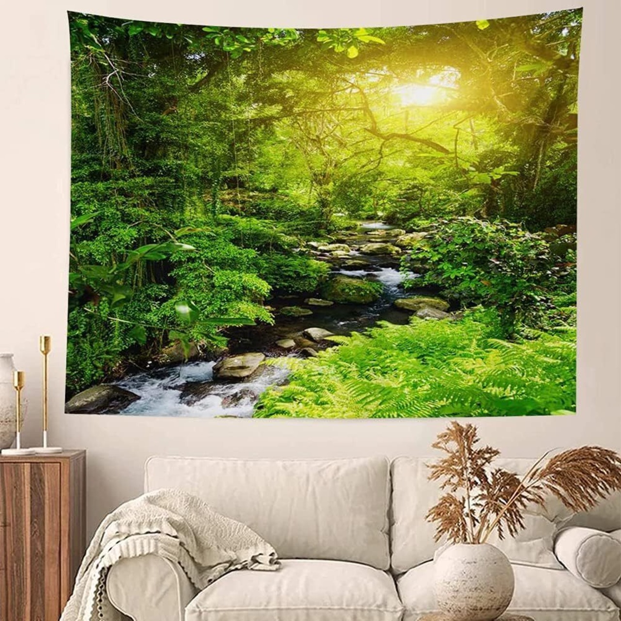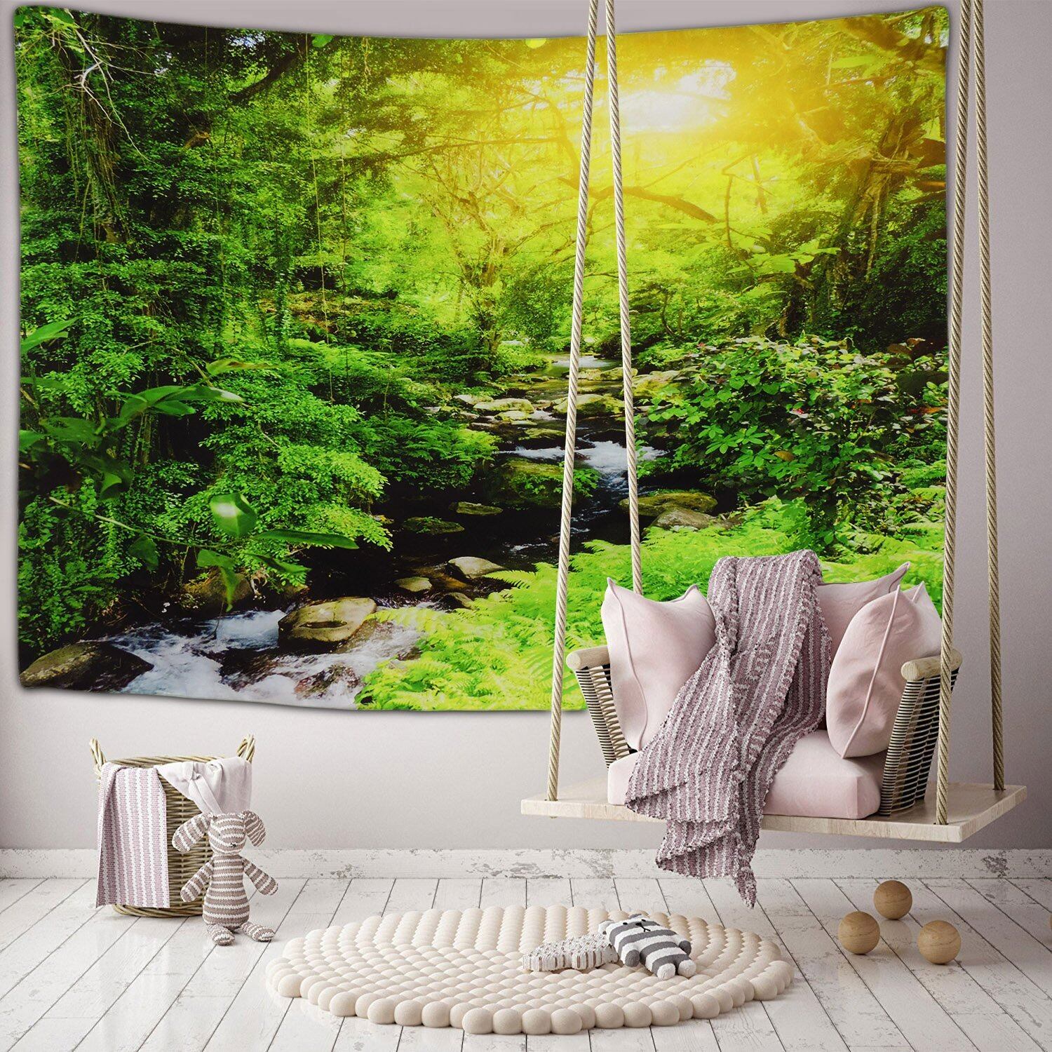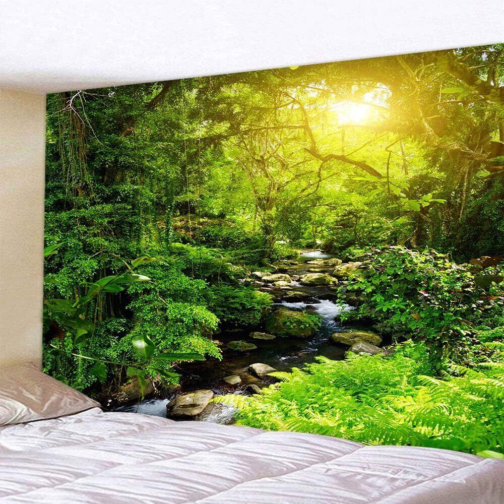 Pknoclan タペストリー 森 渓流 木 大判 壁掛け 自然 235x180cm布ポスター 新緑の並木 部屋や窓の飾り インテリア リビングルーム ベッドルーム お店 個性ギフト
