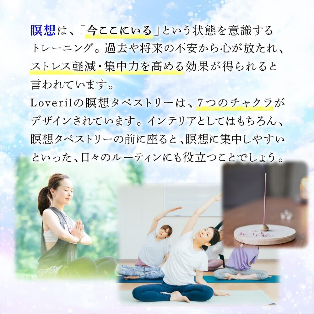 【在庫セール】Loveril 瞑想 (ブラック チャクラ) チャクラタペストリー ヨガタペストリー タペストリー ヨガラグ 曼荼羅タペストリー 7つのチャクラ インテリア 壁掛け タッセル付き 部屋用 ヨガ教室 スピリチュアル 異国アート…