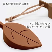 【商品説明】 ・可愛い葉っぱ型なので置いておくだけでもインテリアグッズとして使えます。 ・シリコン製でやわらかいのでドアを傷つける心配がありません。 ・紛失防止のひも付きで管理、収納がしやすくなっています。 【商品仕様】 カラー ブラウン 素材 シリコン