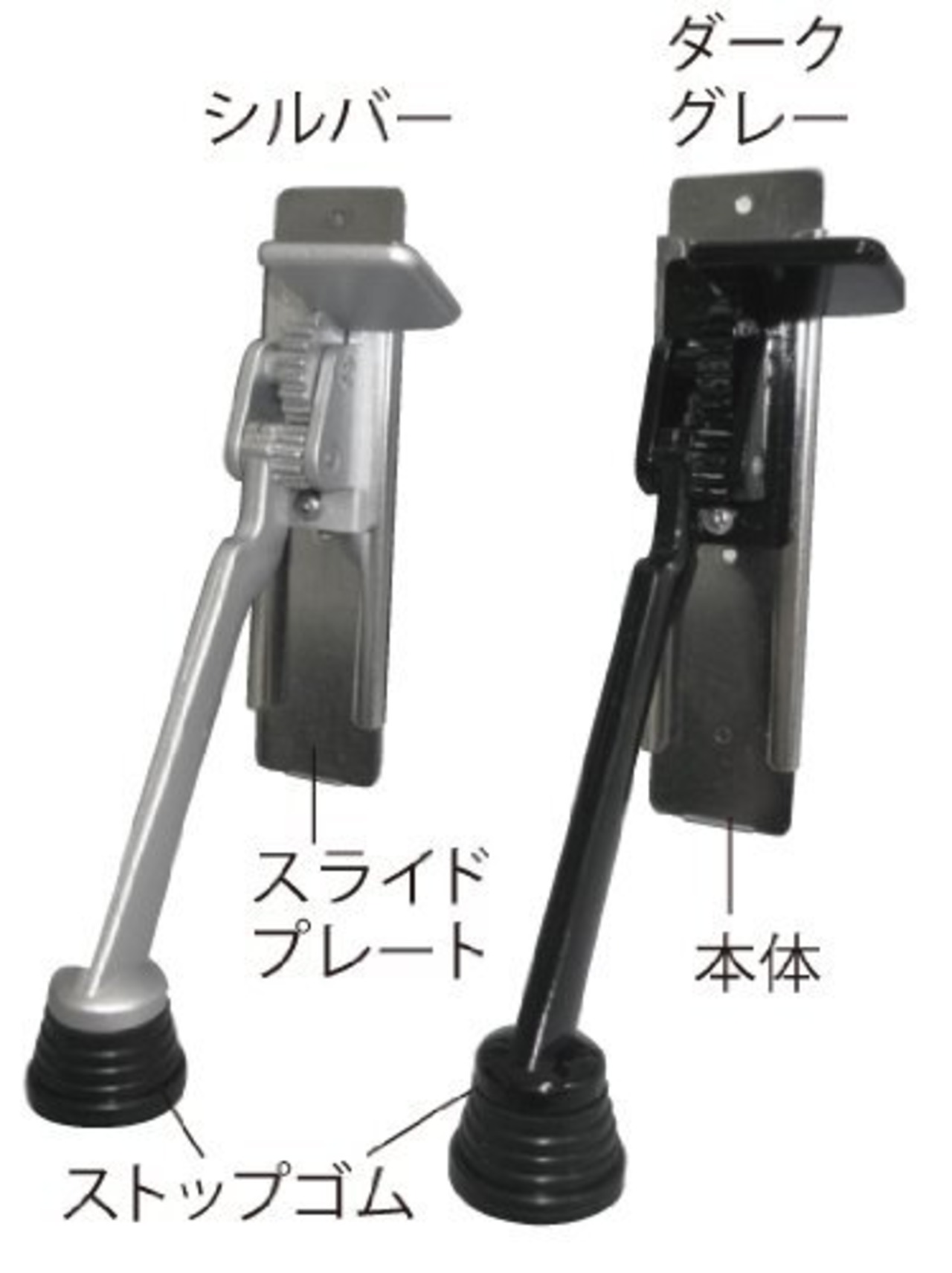 マグネットタイプの様に使用時(ドアを固定している時)に本体がズレたりする事がないので、ドアに傷が付く事がありません!脚はゴム底部分が床面と平行に接するので、浮いたりズレたりせずしっかり固定!