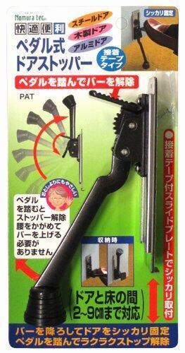 強力接着テープでドアに取り付け、ペダルを踏むとストッパー解除、腰をかがめてバーを上げる負担がありません!