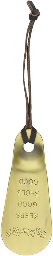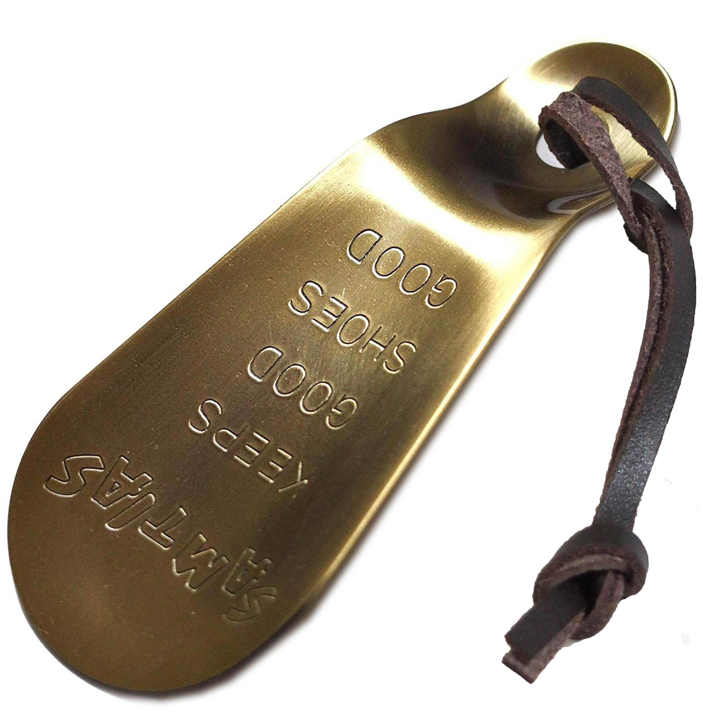 SAMTIAS 携帯 靴べら 真鍮 金属 ハンド シューホーン アンティック ( 本革 キーホルダー ストラップ付き )