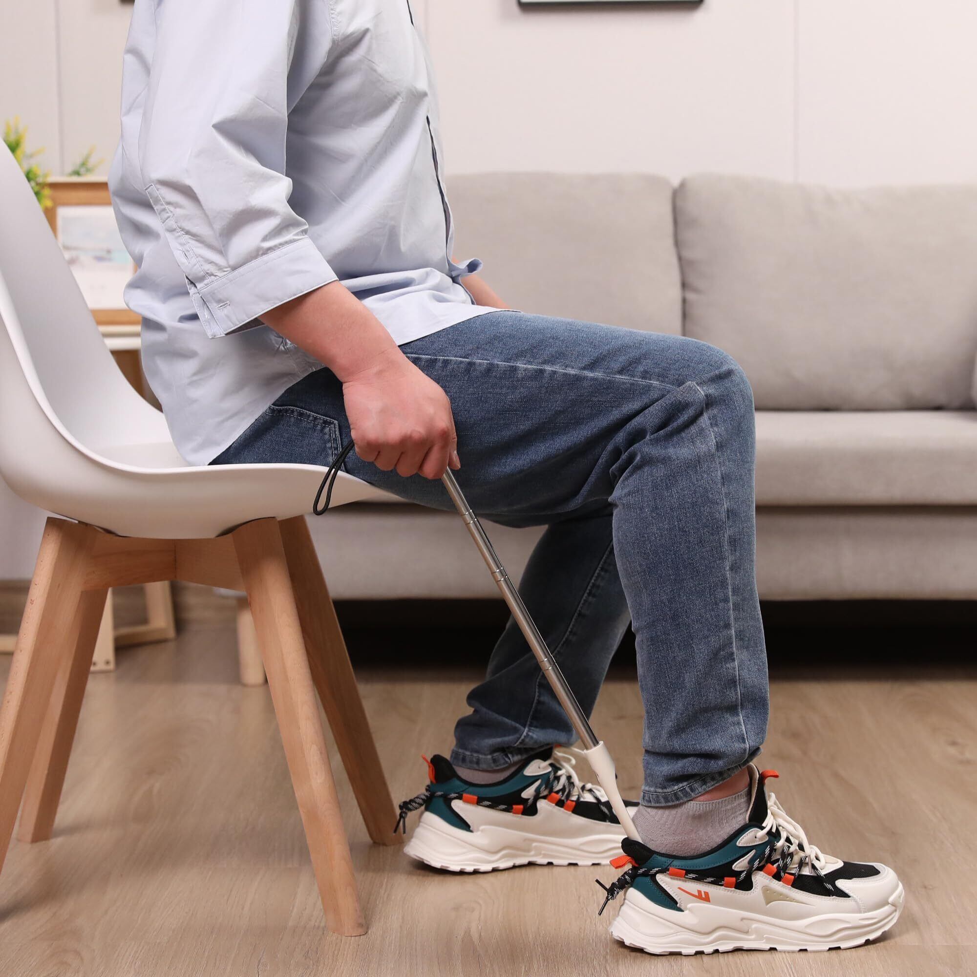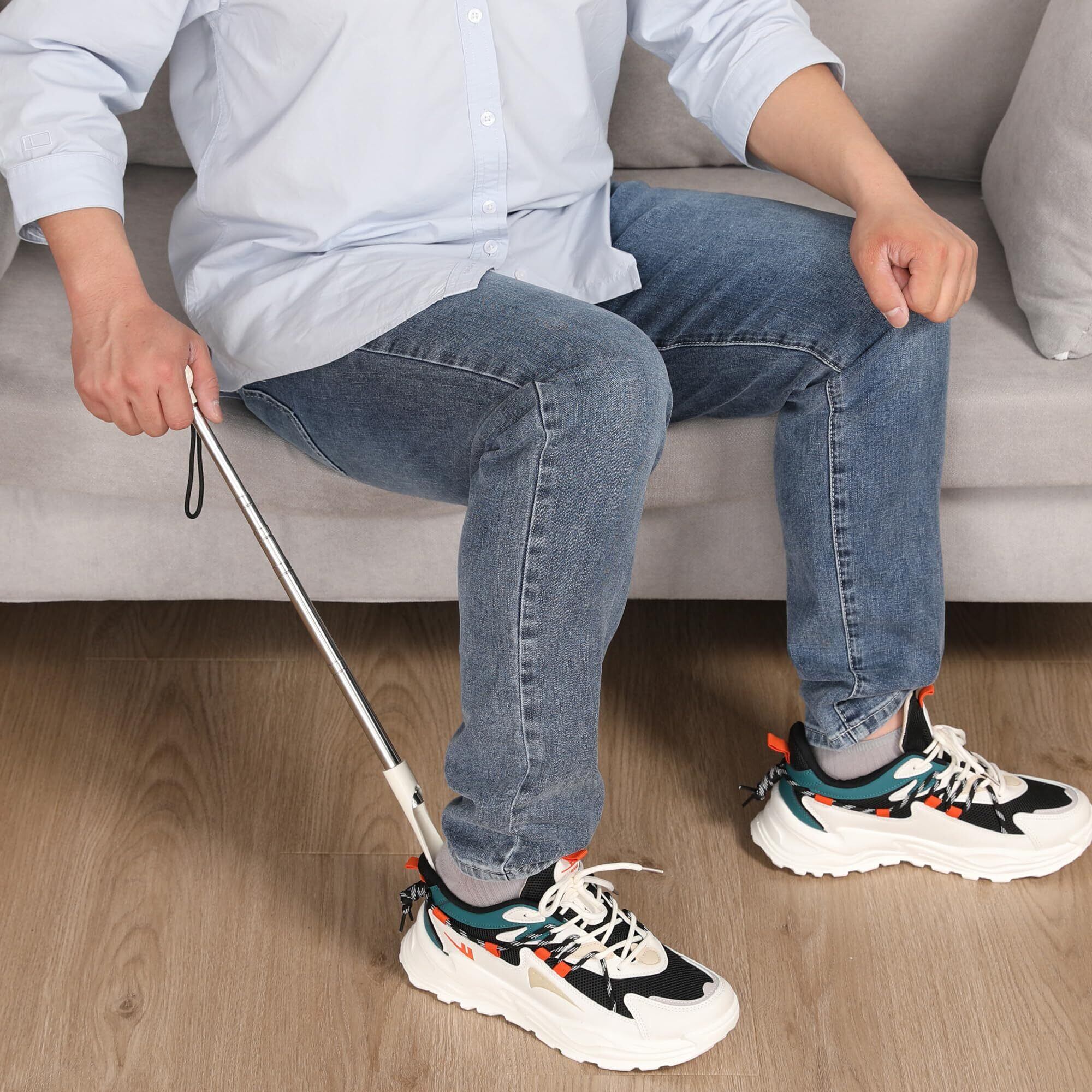 【全年齢層に適した伸縮式靴べら】靴べらの長さは18cmから92cmまで調節可能。座ったまま、または立ったままでも使用でき、腰を曲げることなく靴を履くことができます。お年寄り、妊婦、子供、男性、女性など、家族全員に適したデザインです。
