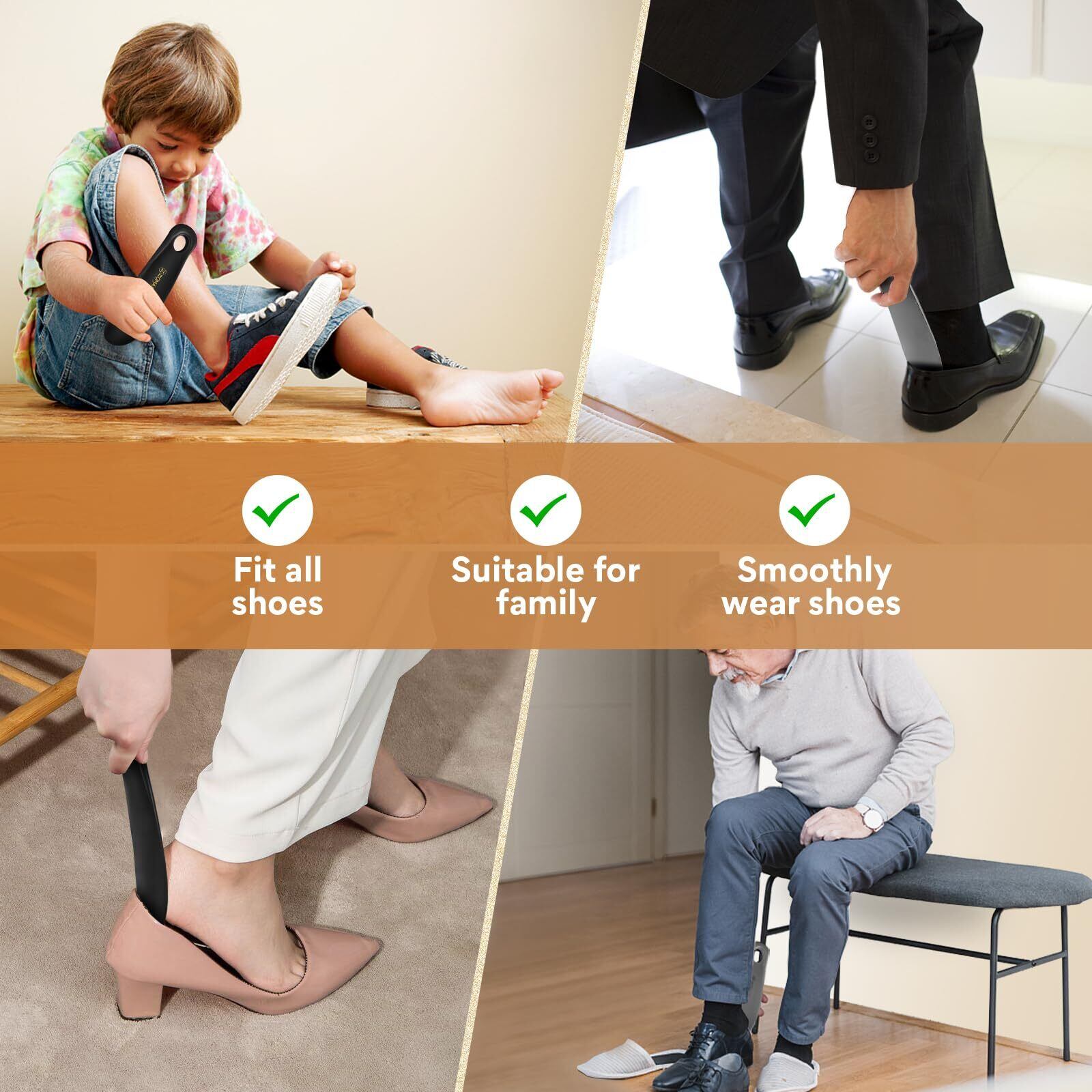 【18CMの靴べら-全年齢向け】靴べらはかかとにフィットし、靴を履くのは簡単です。短い靴べらは家族全員に適しており、高齢者、子供、妊娠中の女性が簡単に靴を履くのに役立ちます。