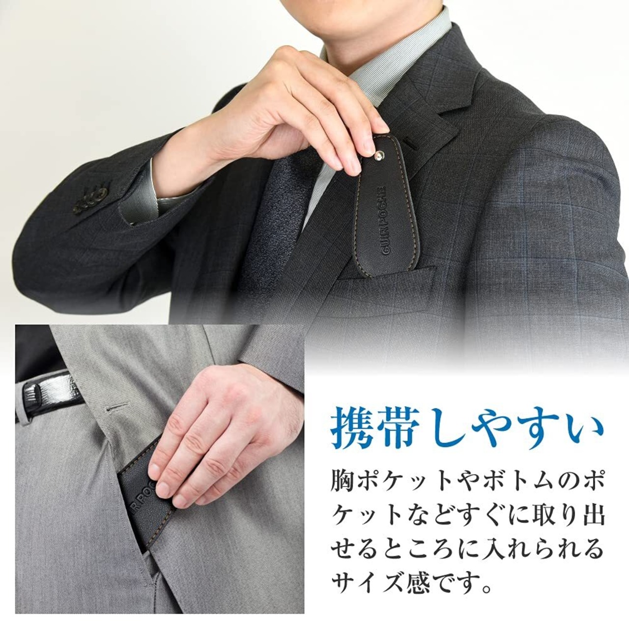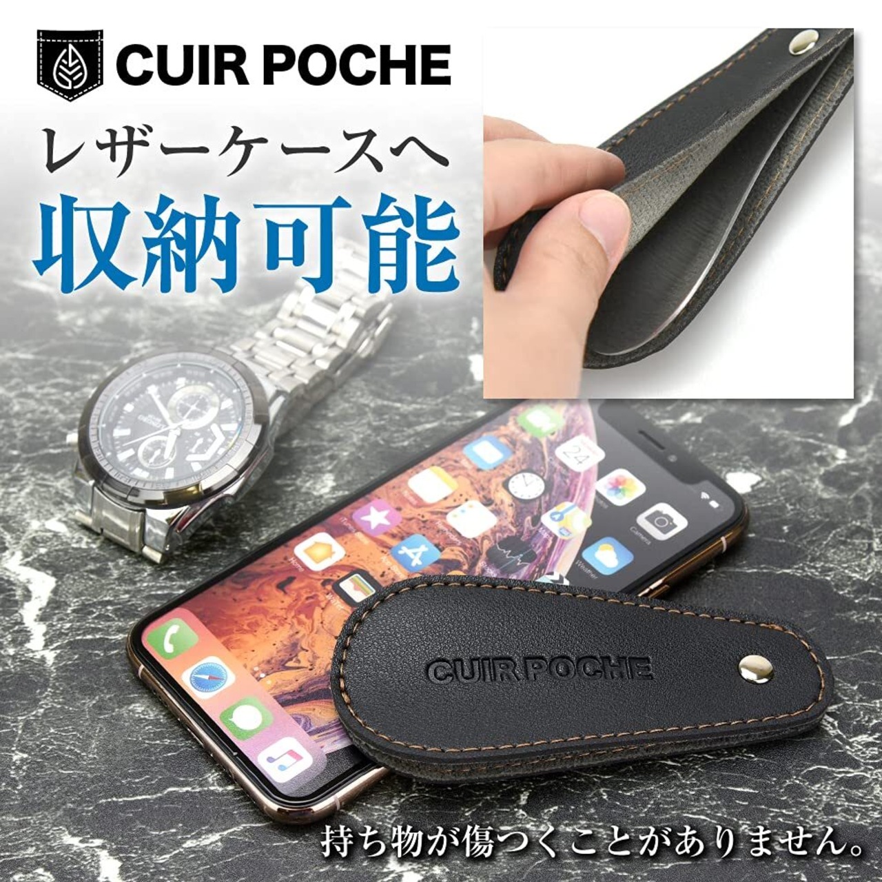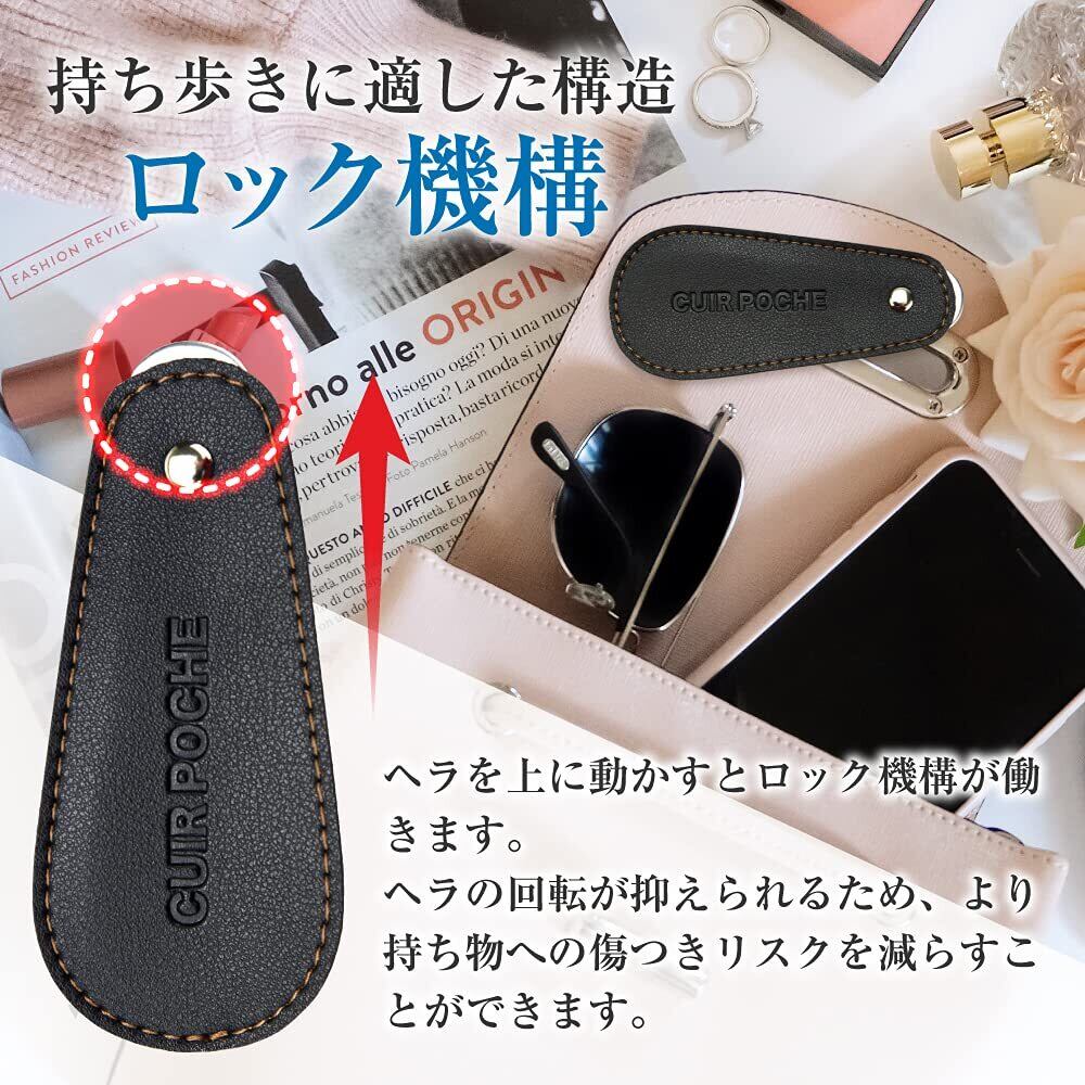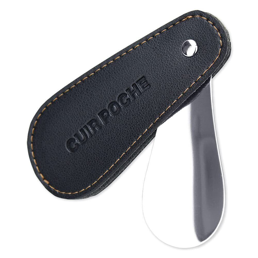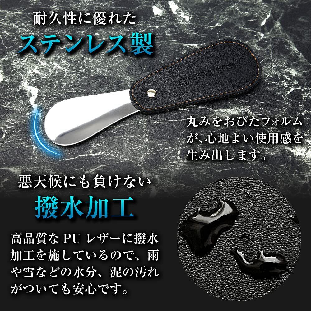 CUIR POCHE 靴べら シューホーン 携帯 おしゃれ レザー調 カバー付き ロック機能 傷つき防止 撥水加工 防汚加工 ステンレス 軽量 ビジネス ゴルフ メンズ レディース