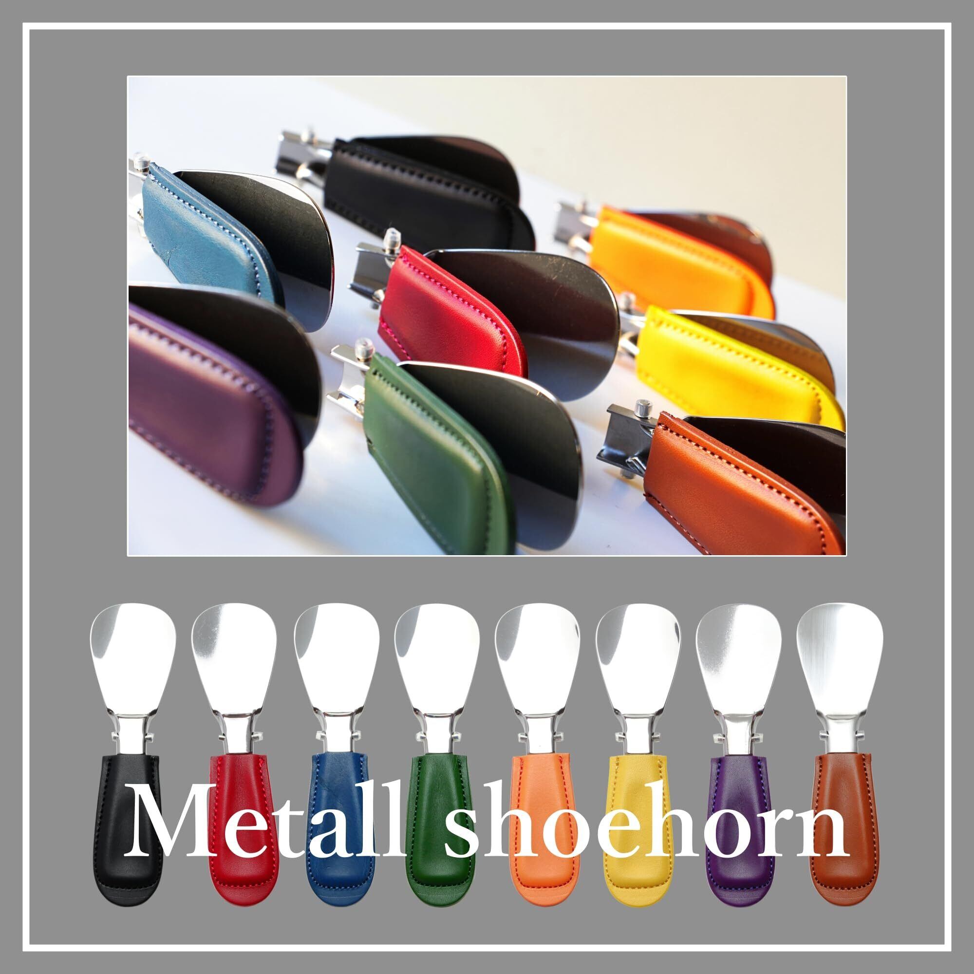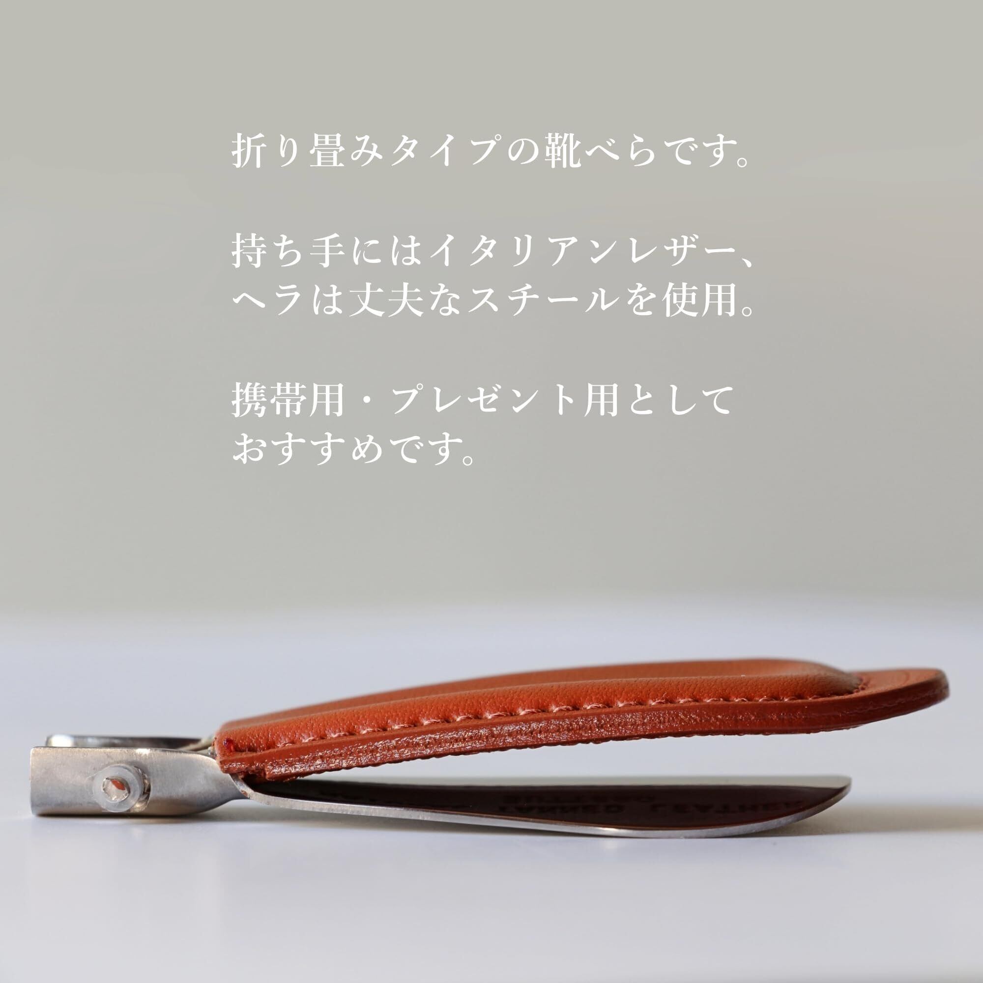 【2022最新】靴べら/携帯用 イタリアンナチュラルレザー ブッテーロ使用 メタルシューホーン 折り畳み式 オープン時14.7cm クローズ時8.8cm