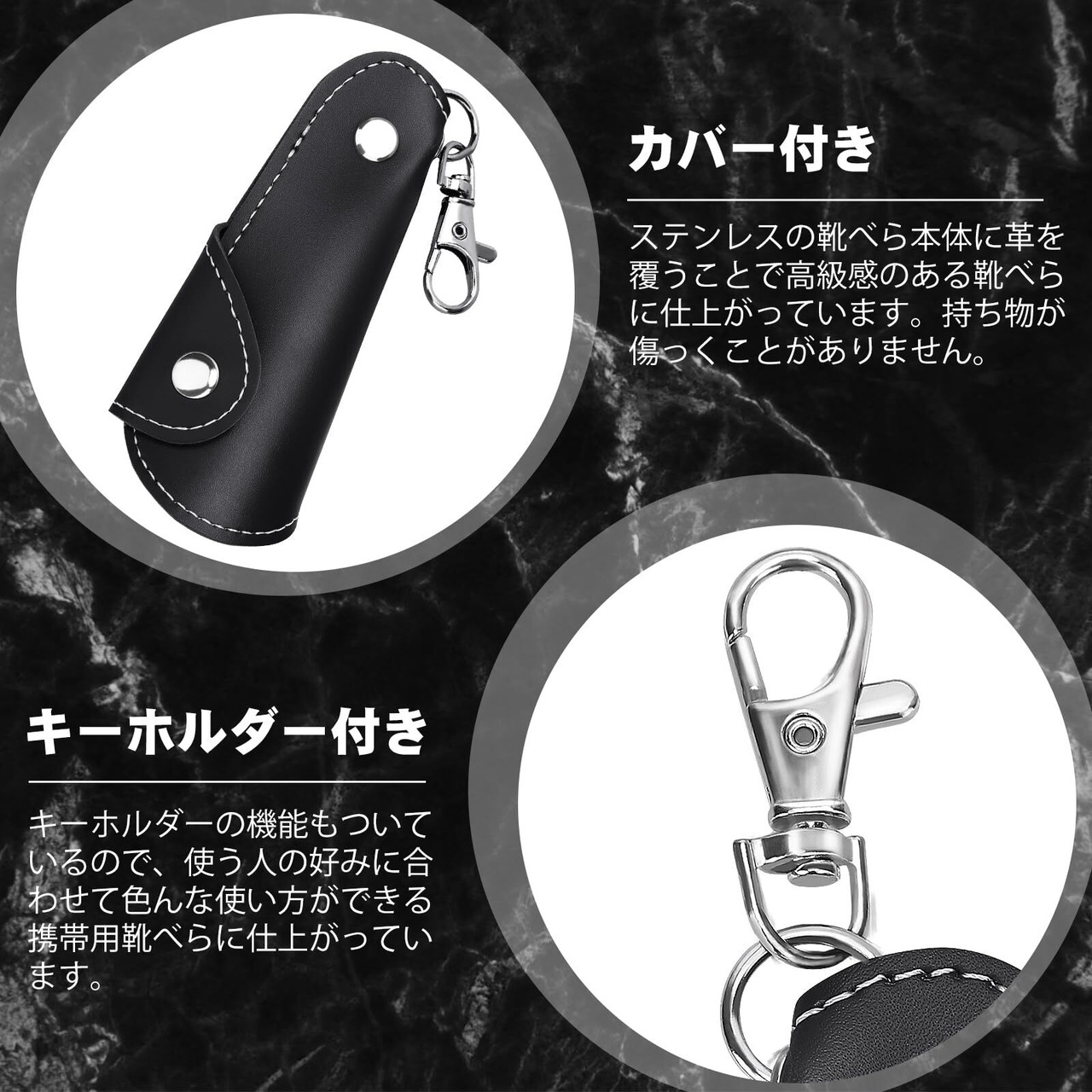 【2022最新】靴べら 携帯 キーホルダー ミニ シューホーン PUケース ステンレス コンパクト 軽量 おしゃれ メンズ レディース