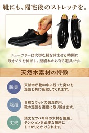 木製ならではの脱臭・調湿作用を生かしたナチュラルなシューツリー。無香に近い自然なウッドの香りはお使いになる方の好みや場所を選びません。調湿作用を最大限に高めるためニス加工はせず、木のメリットを生かしました。◆お得な商品数:2個セット、4個セットも選択できます。◆