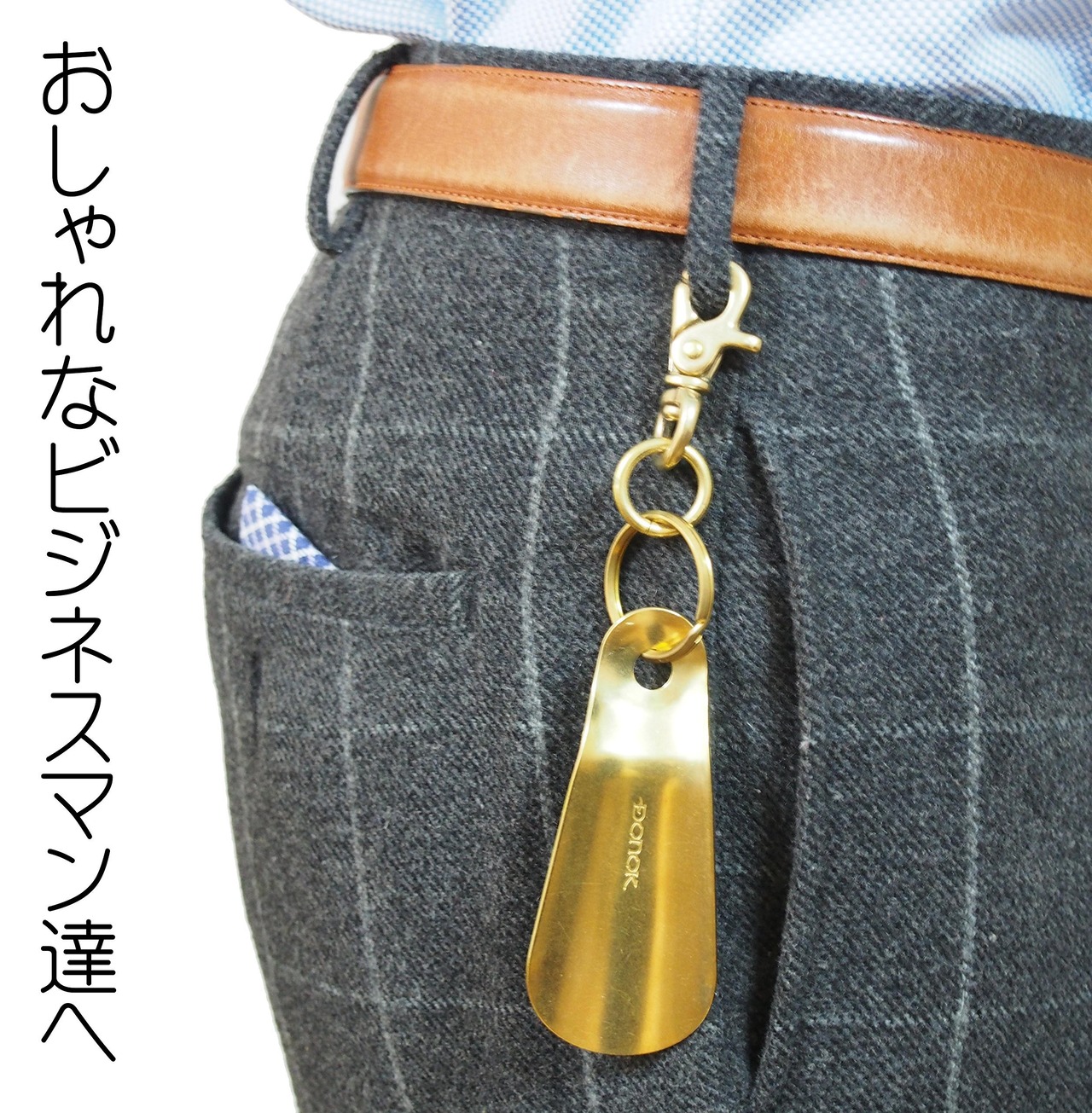 携帯 靴べら 真鍮 おしゃれ ハンド シューホーン 日本製 キーホルダー カラビナ フック 真鍮 無垢 Bracias Shoe Horn
