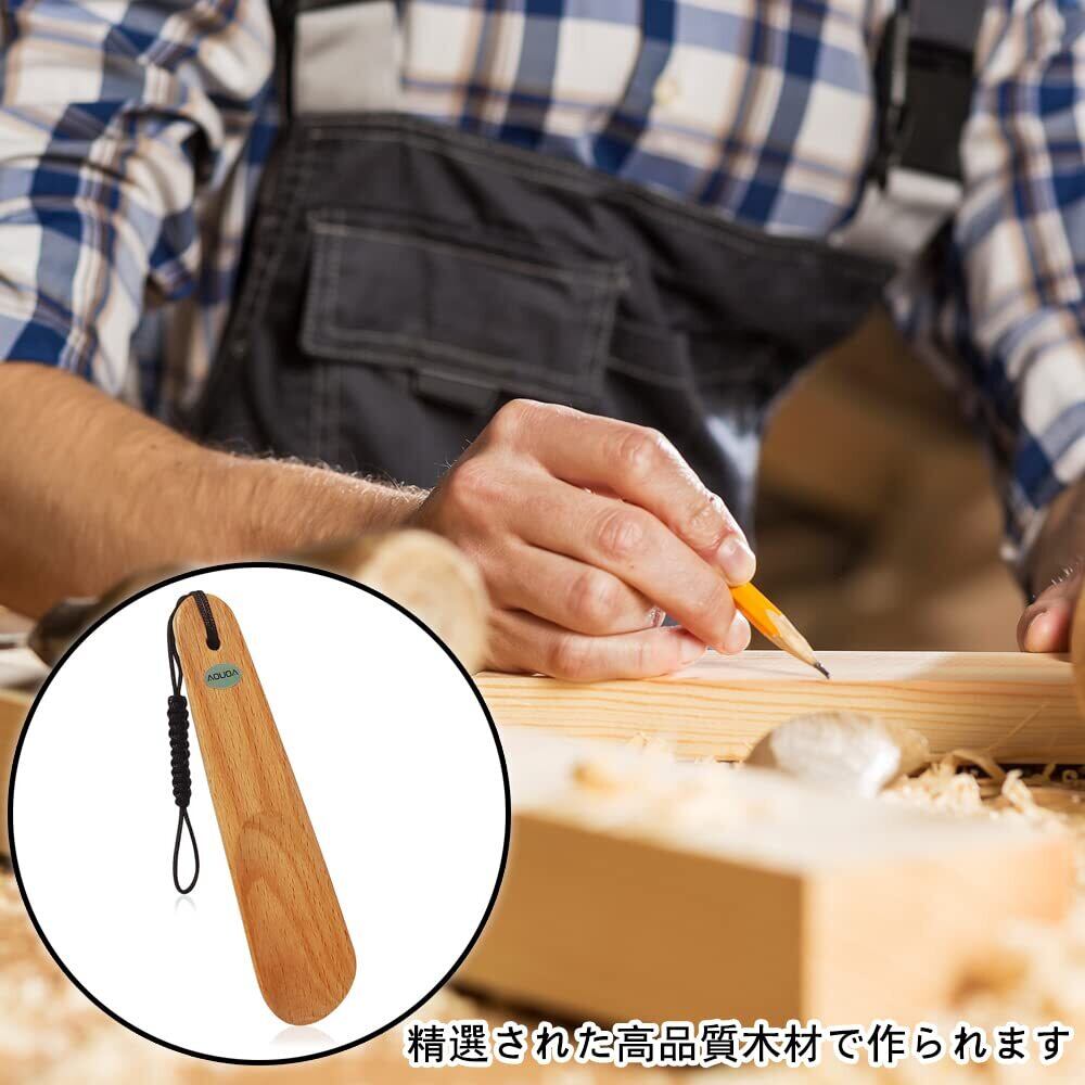 靴べら 天然木(欅材料)くつべら 携帯 靴ベラ 短ヘラ 木製 ポータブル 持ち運び便利 長さ約:14.5cm 人体工学の設計