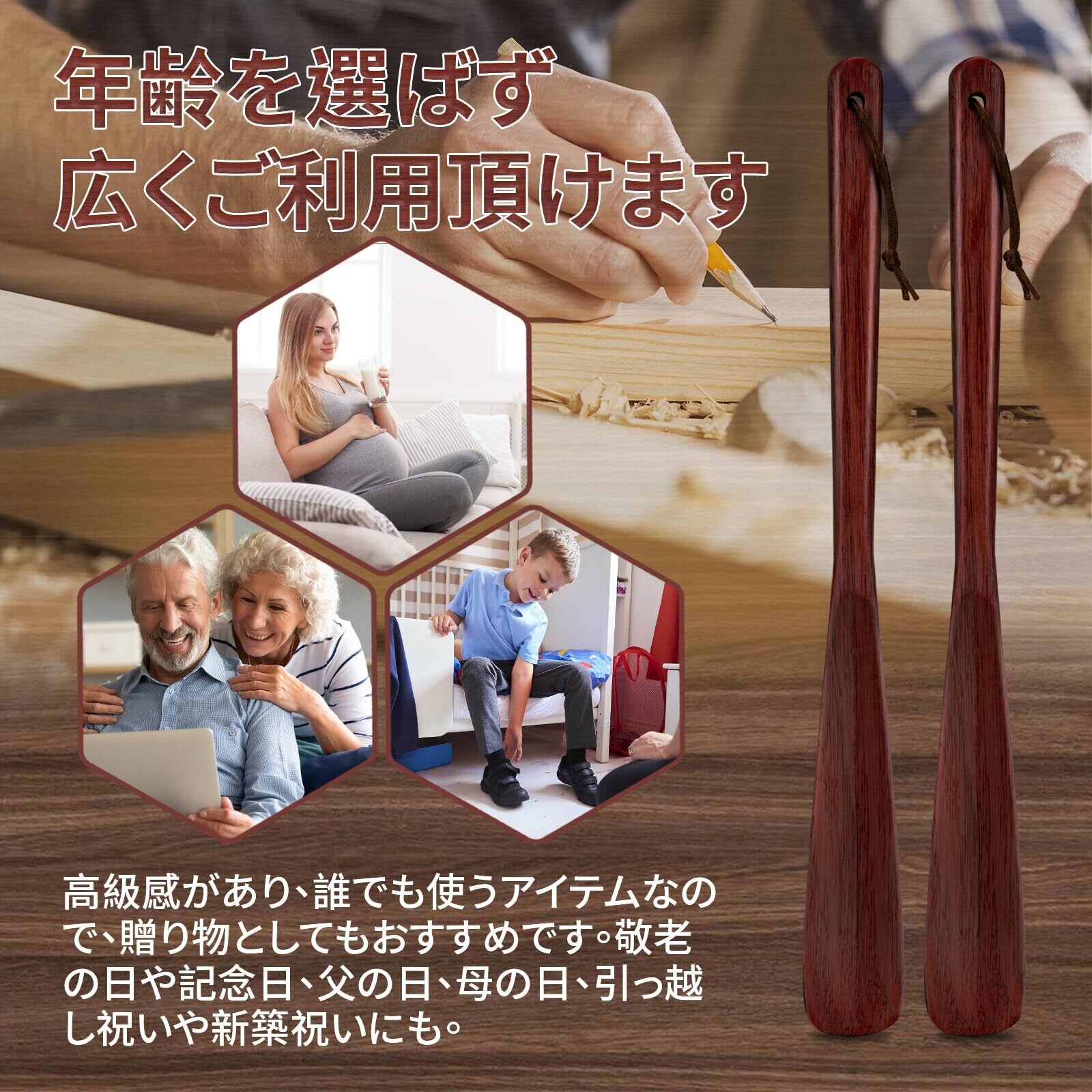 【新着商品】靴べら 木製 ロング くつべら 軽量 シューホーン おしゃれ 男性、女性、子供、高齢者用