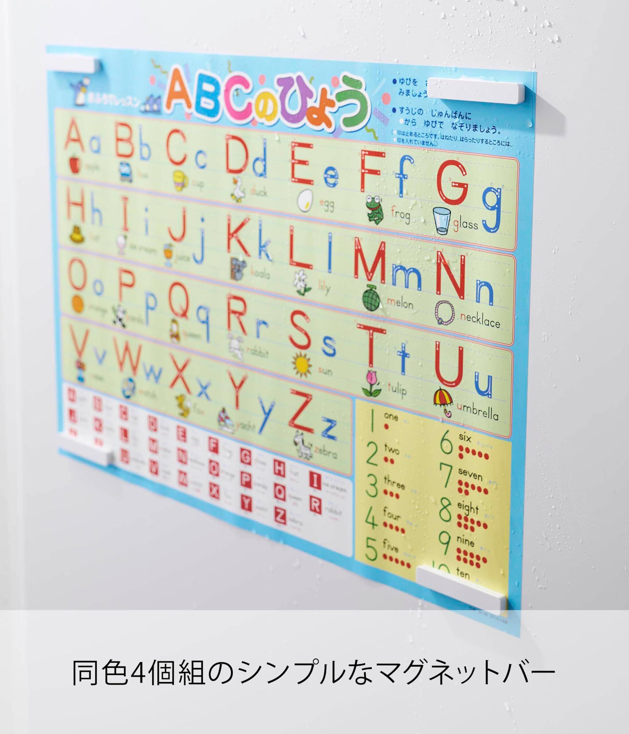 バスルームで子供のお勉強シートを貼るのにも使えます。