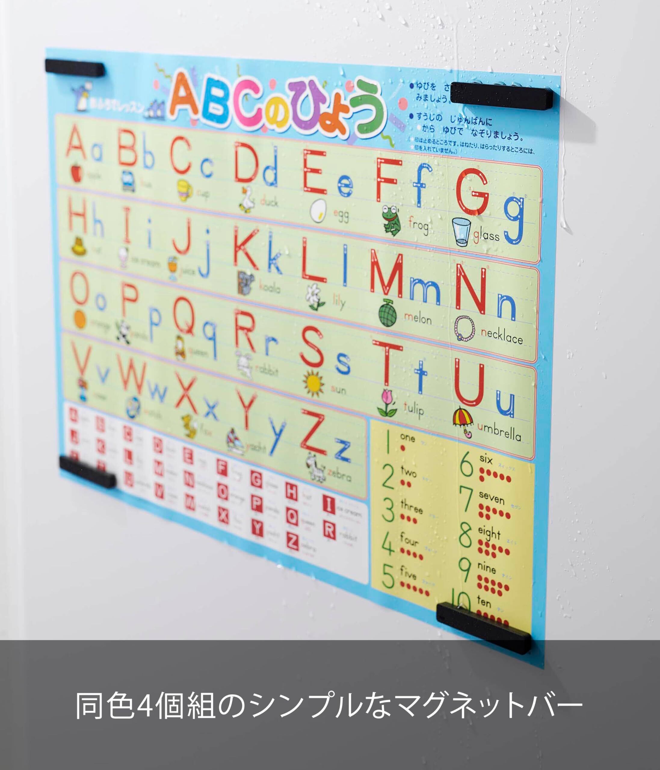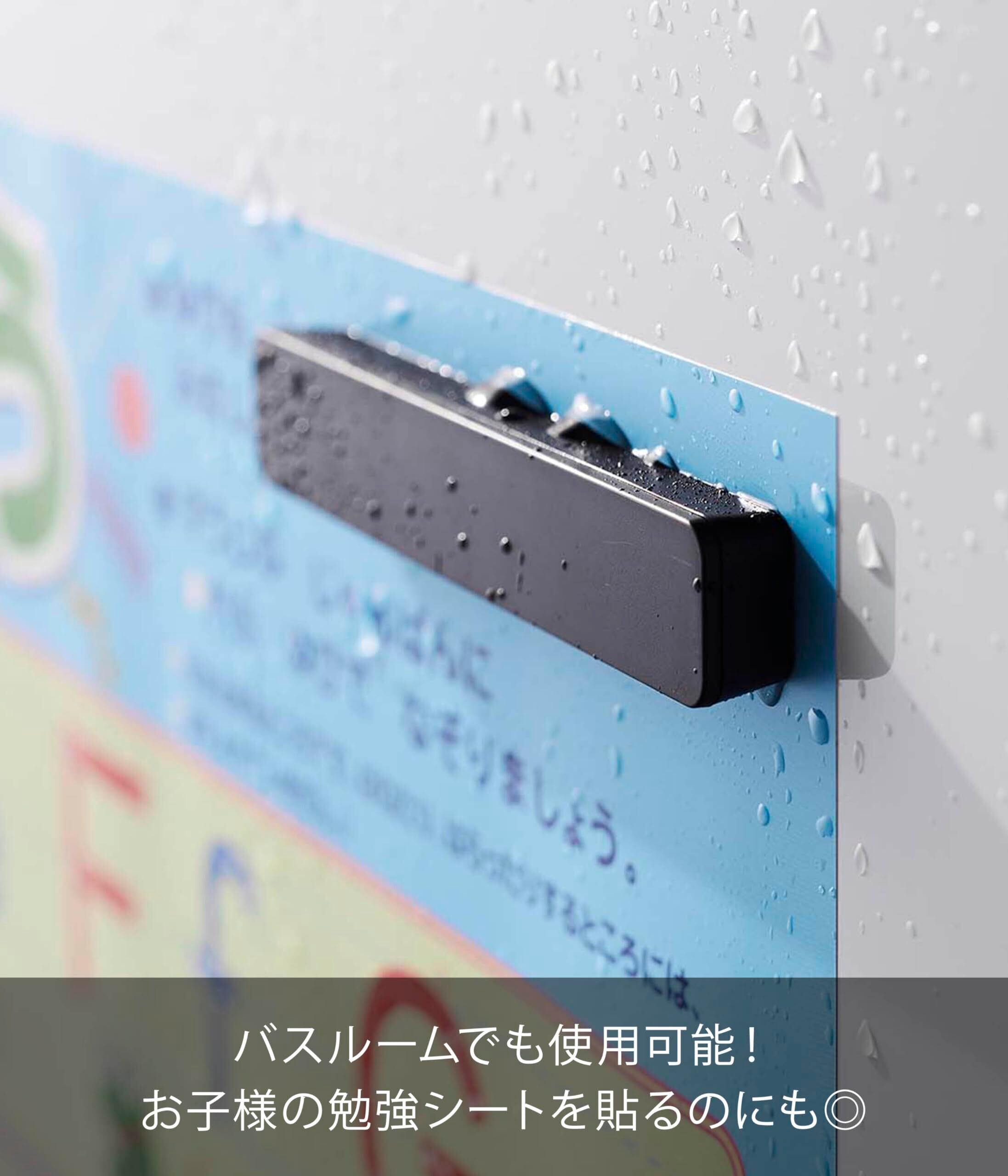 バスルームで子供のお勉強シートを貼るのにも使えます。