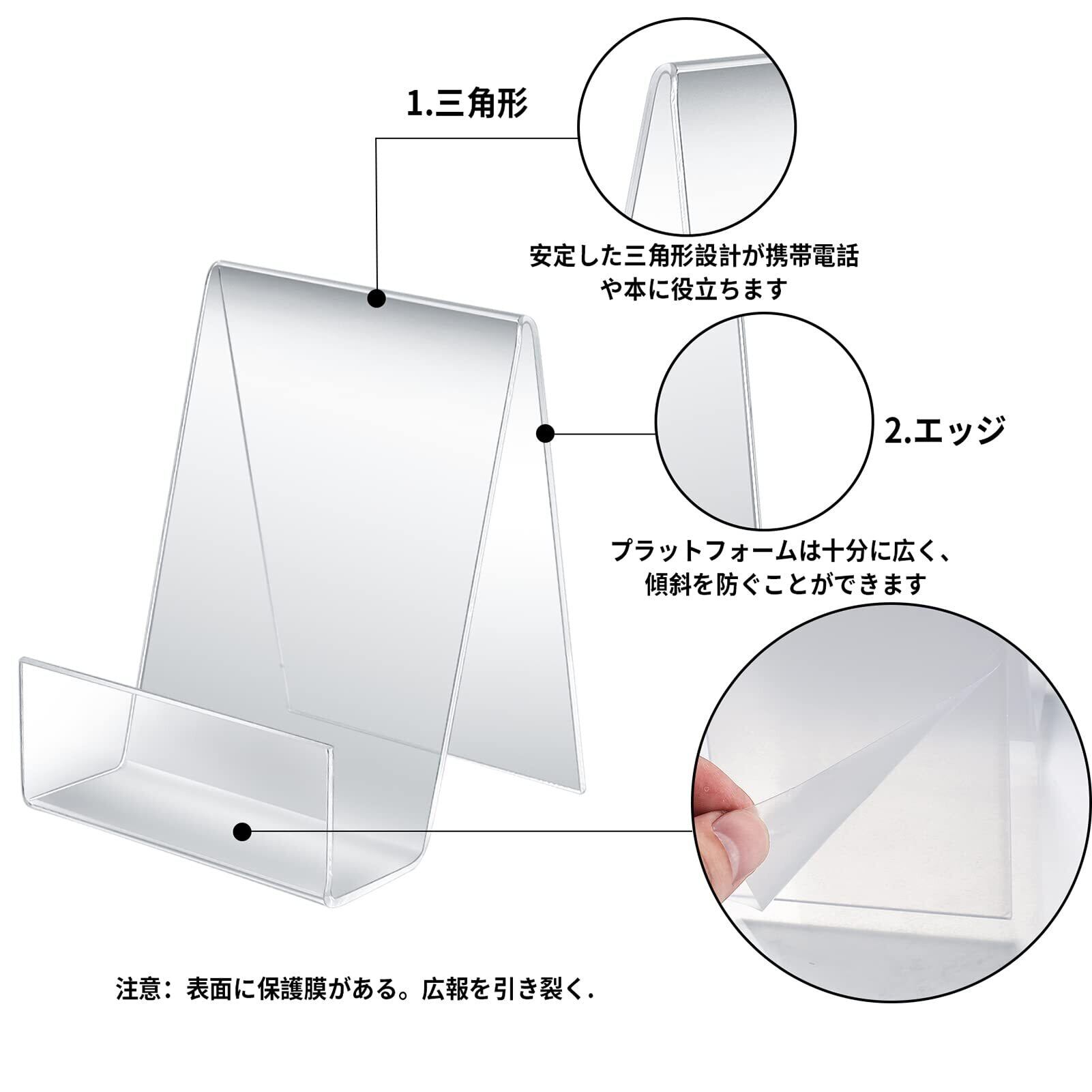 - ディスプレイスタンドは透明なアクリル素材でできており、丈夫で長持ちします。