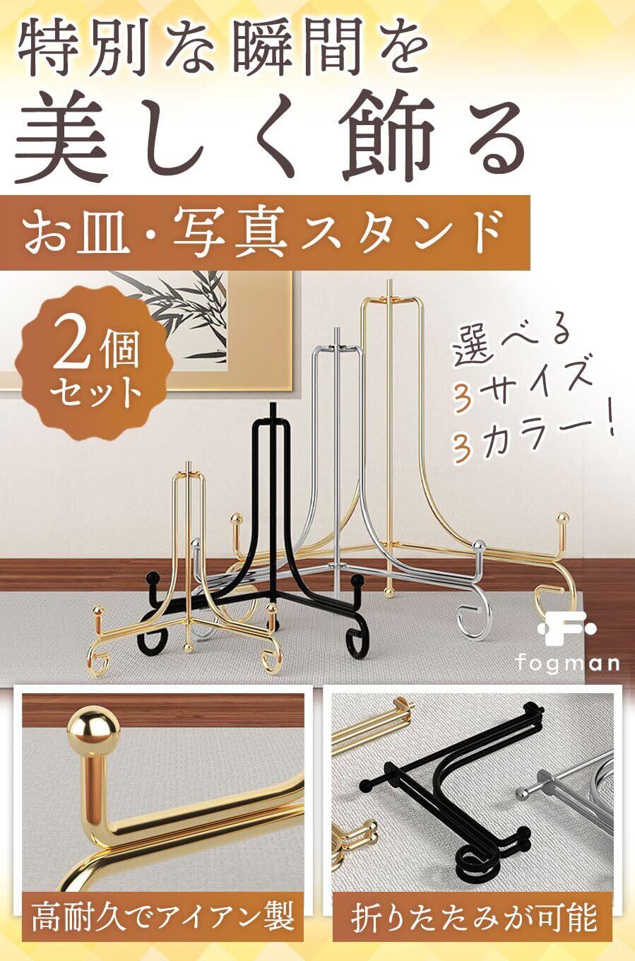 【特価商品】fogman 皿立て プレートスタンド スタンド お皿スタンド 写真スタンド 色紙立て 2個セット (ゴールド 6インチ)