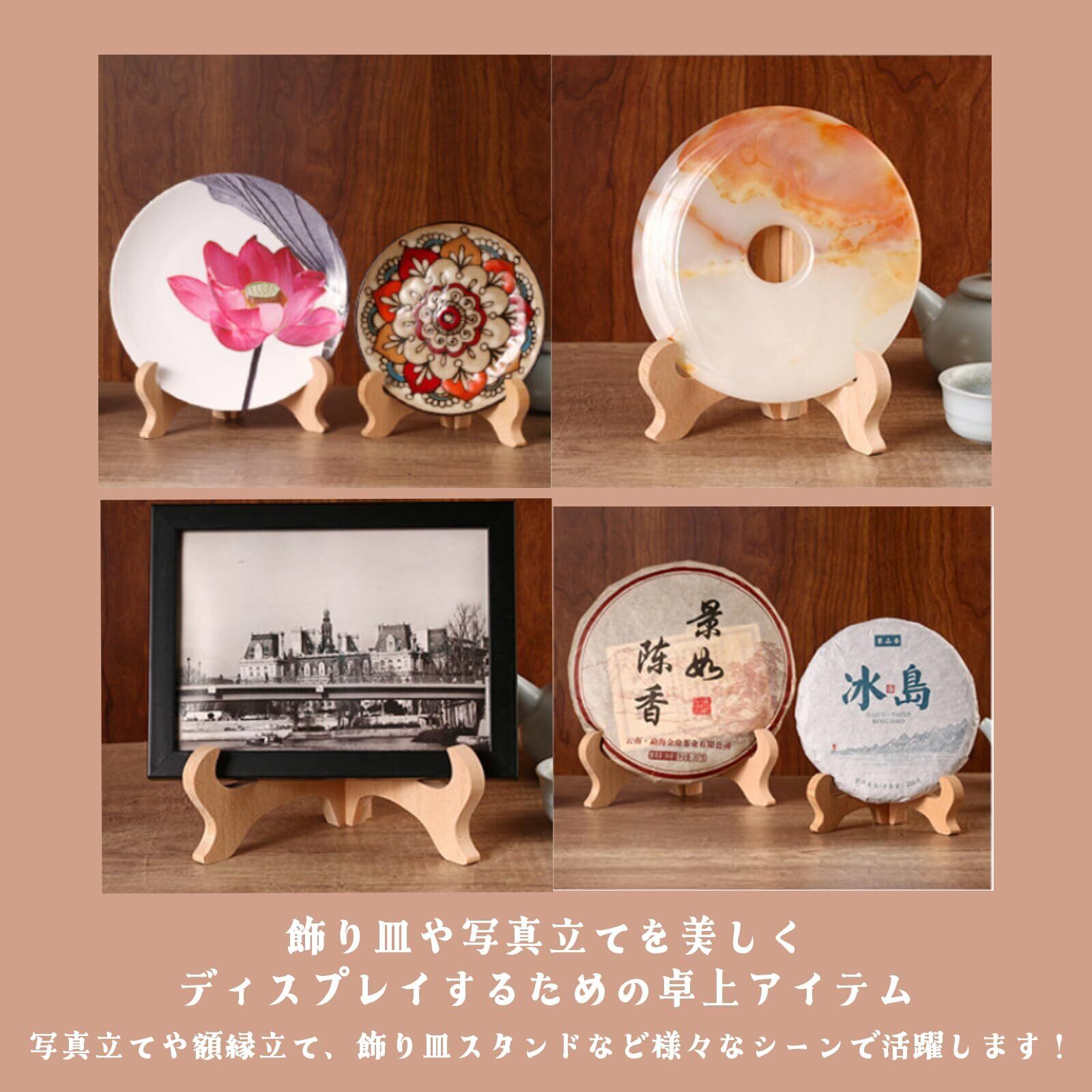 皿立て スタンド 木製 収納 写真立て 額縁立て 飾り皿 和風 飾り 卓上 ディスプレイ (高さ10cm(対応サイズ:10-12cm))