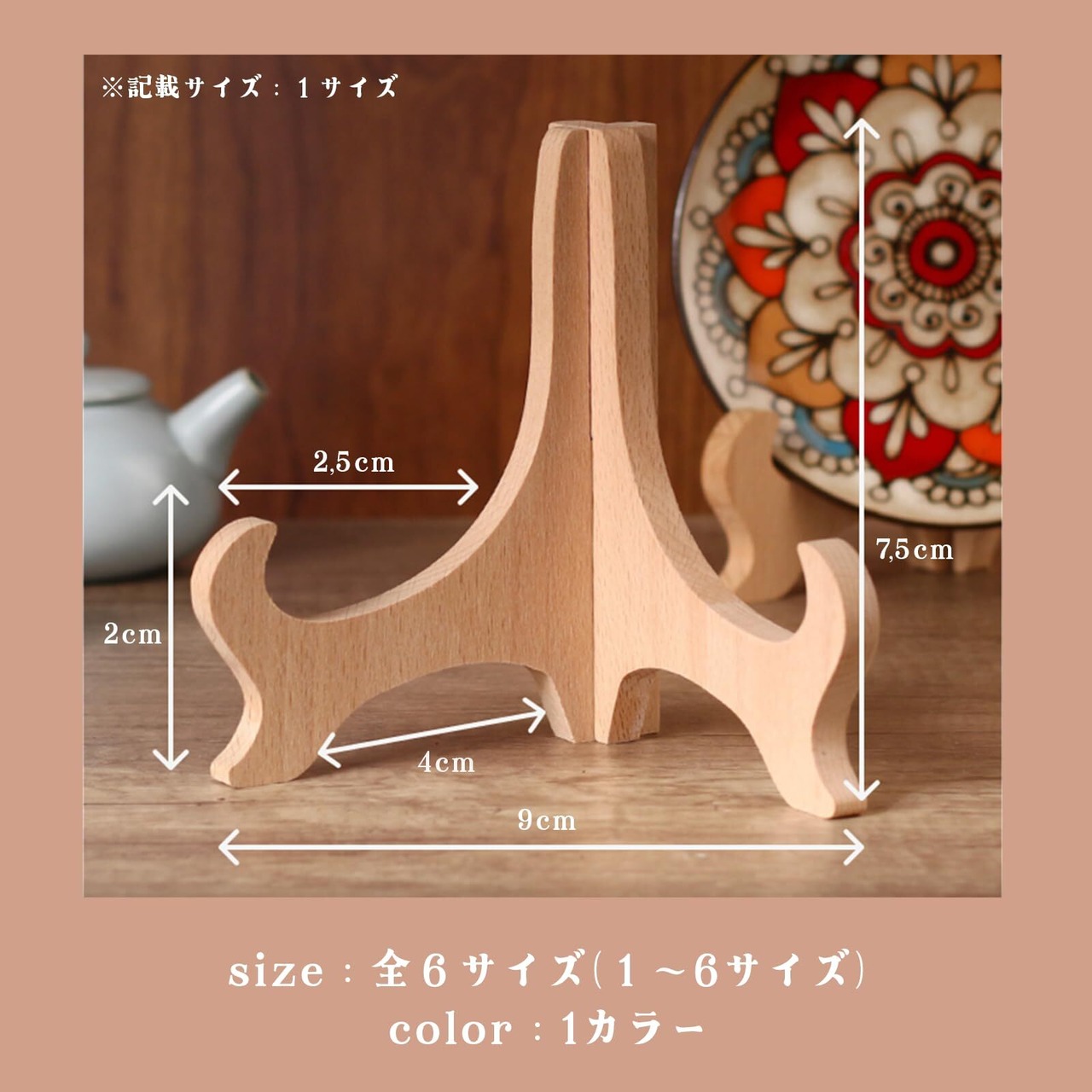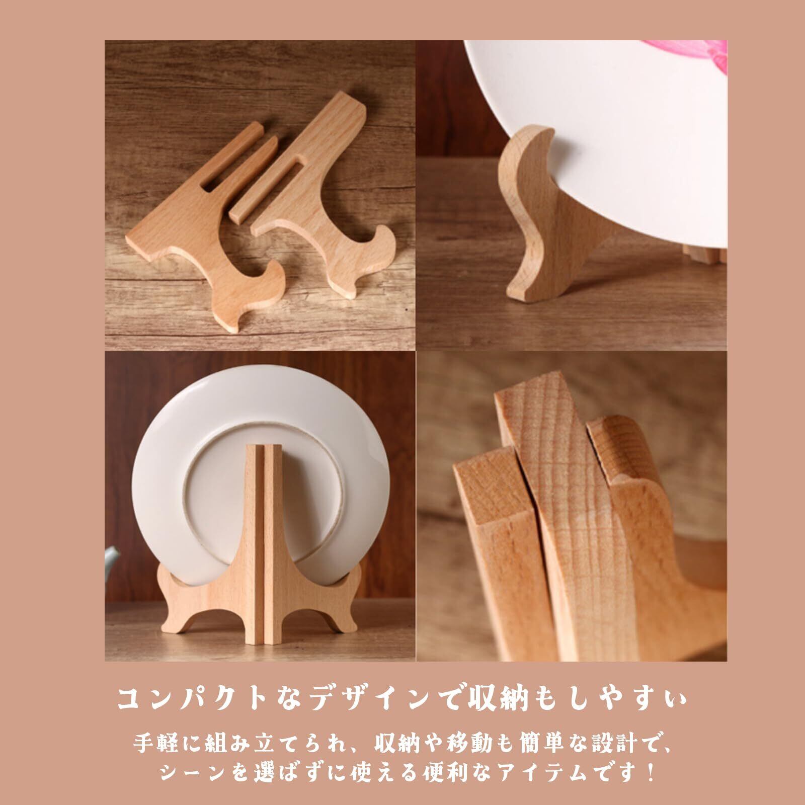 簡単な組み立て式なので、手軽に使用できます。和風の雰囲気が漂うデザインで、お気に入りの飾り皿や写真をしっかりと支え、卓上や棚の上で安定して展示することが可能です。 また、額縁立てとしても活用でき、アート作品や大切な写真をおしゃれに飾ることができます。リビングルームでの飾り皿ディスプレイや、玄関での写真立てとしても、訪れる人々の目を引きつけます。