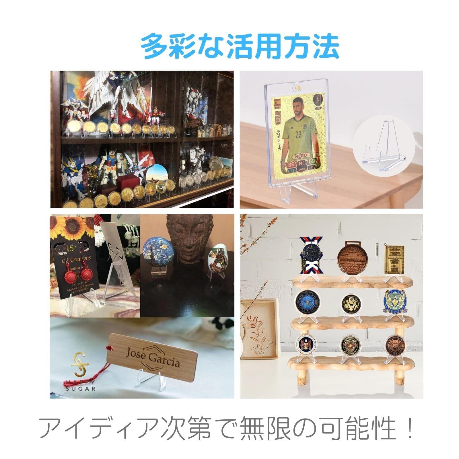 【コレクションに輝きを】記念硬貨、缶バッジ、メダル、トレカなど、さまざまな小物を美しく展示することで、今まで眠っていた宝物に新たな生命を吹き込みます。