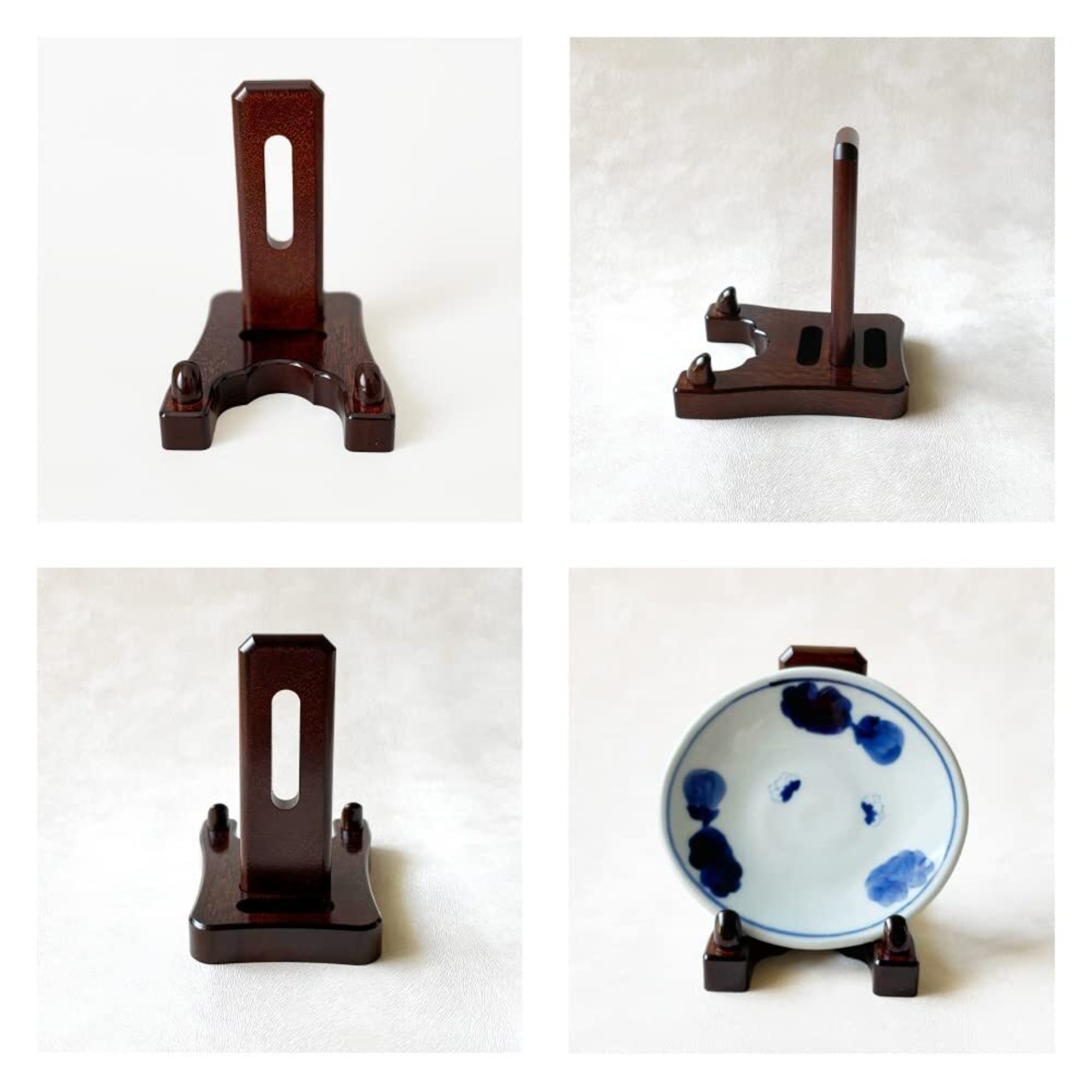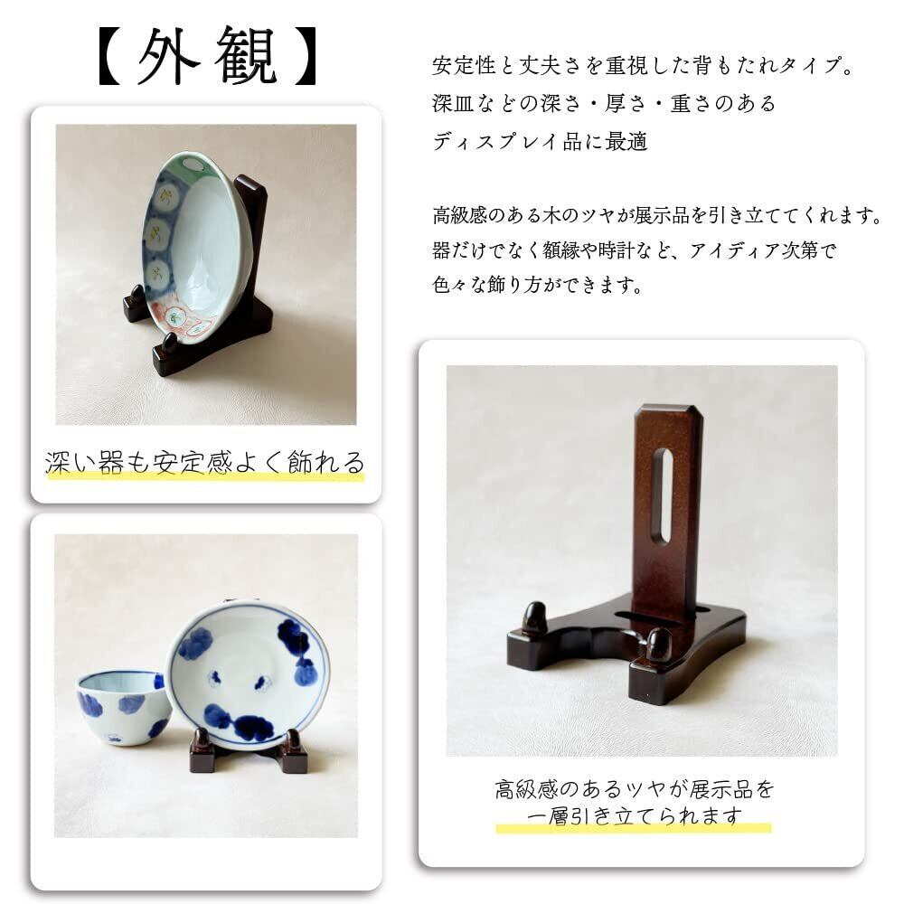 【日本製】紀州塗り職人の丁寧な作りと美しい木目の木製皿立て。豊富なサイズバリエーションで統一したディスプレイスタンドで飾ることが出来ます。