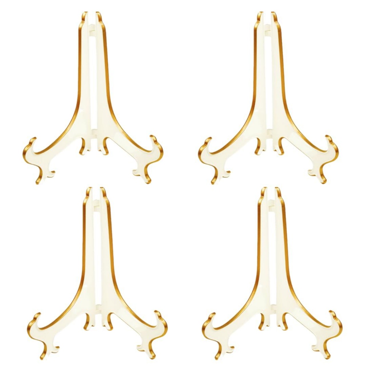 Uccellino アンティーク 皿立て 写真たて ホワイト ゴールド プレートスタンド ディスプレイ (4個セット)