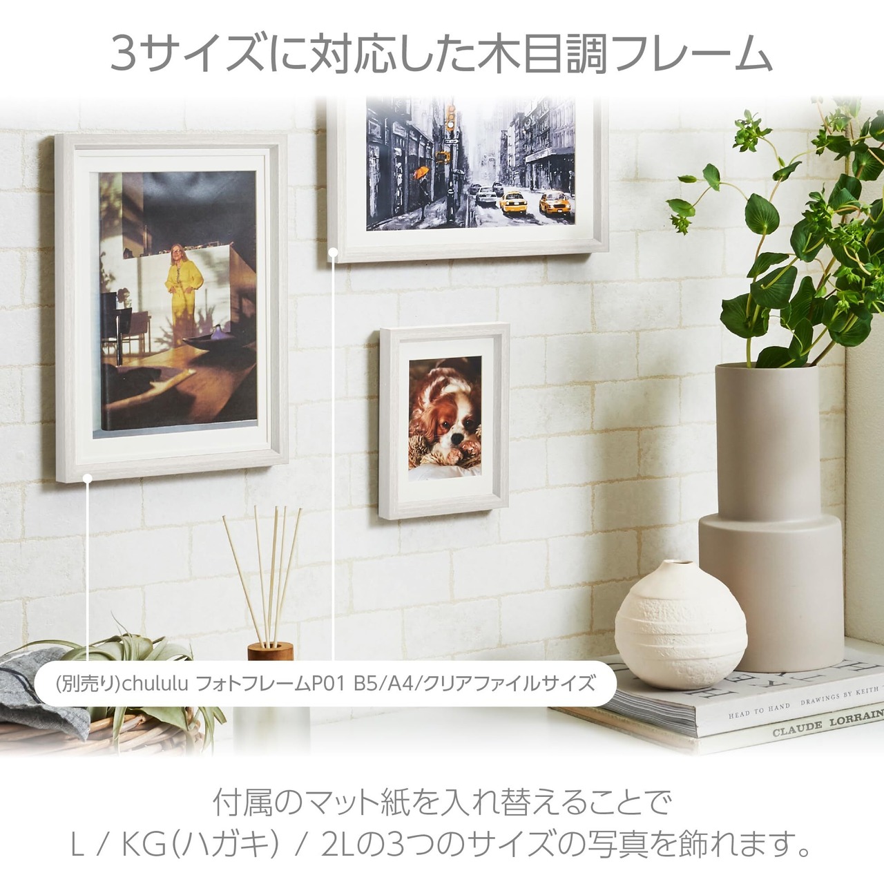 3サイズの写真を飾れるインテリアフォトフレーム