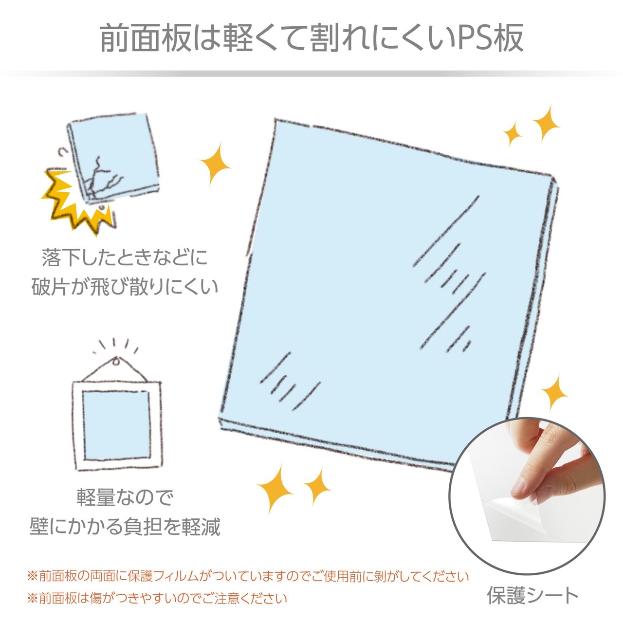 【フレーム材質】 : プラスチック、 【前面板】 : PS板、 【パッケージ】 : 紙箱