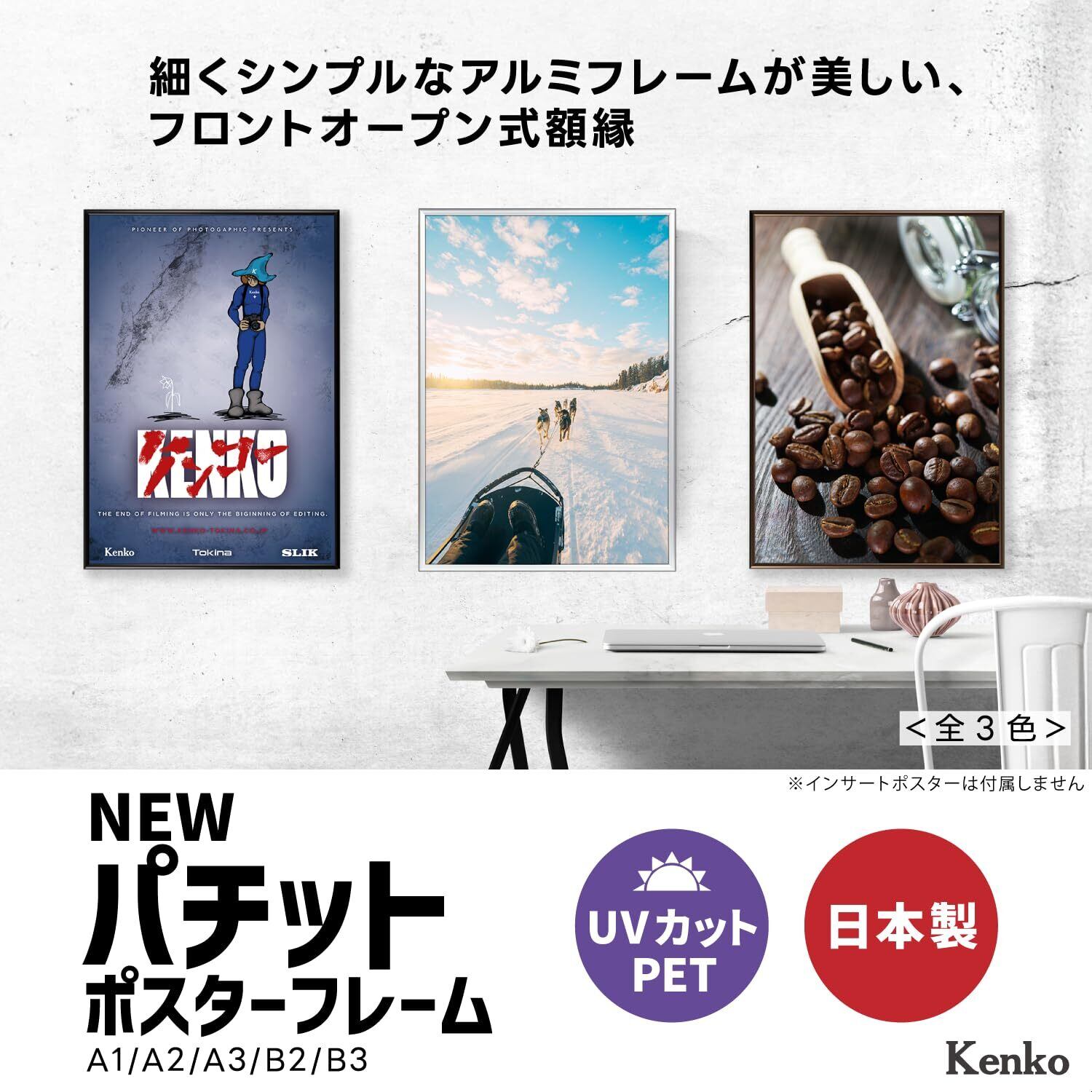 ケンコー(Kenko) ポスター用アルミ額縁 NEW パチットポスターフレーム UVカットプラス B2 ブラック フロントオープン式 日本製 NAPT-B2-BK
