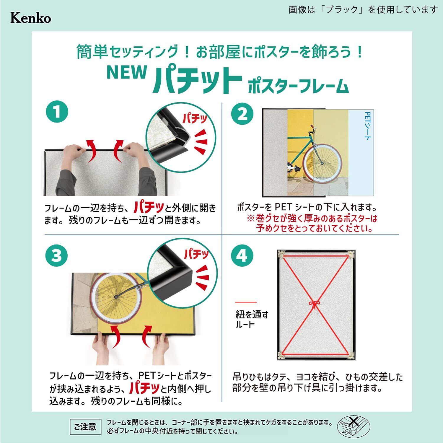 ポスターの額装方法はフレームをひねるだけ、の簡単”パチット”。