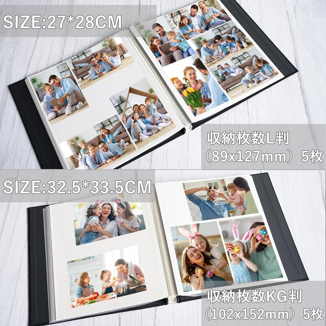 【商品仕様】アルバムサイズ:32.5*33.5*3CM 1ページにLサイズの写真6枚、アルバム1冊にLサイズの写真を240枚を置くことができます。 粘着タイプ白い台紙サイズ:28*32.5CM(20枚/40ページ)梱包内容:写真アルバム×1冊+カラーペン×1本。